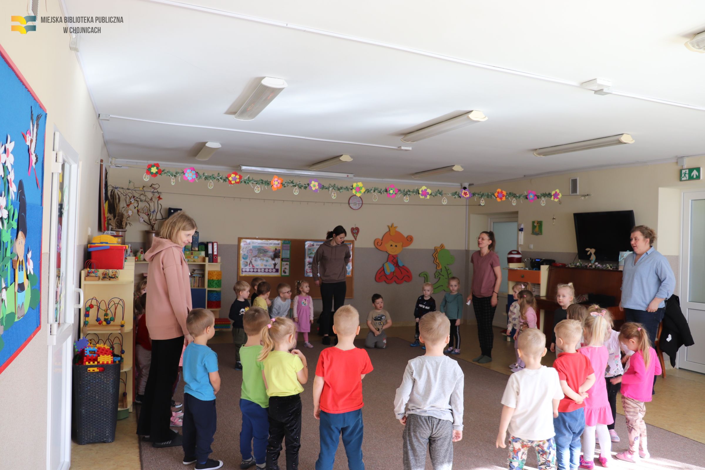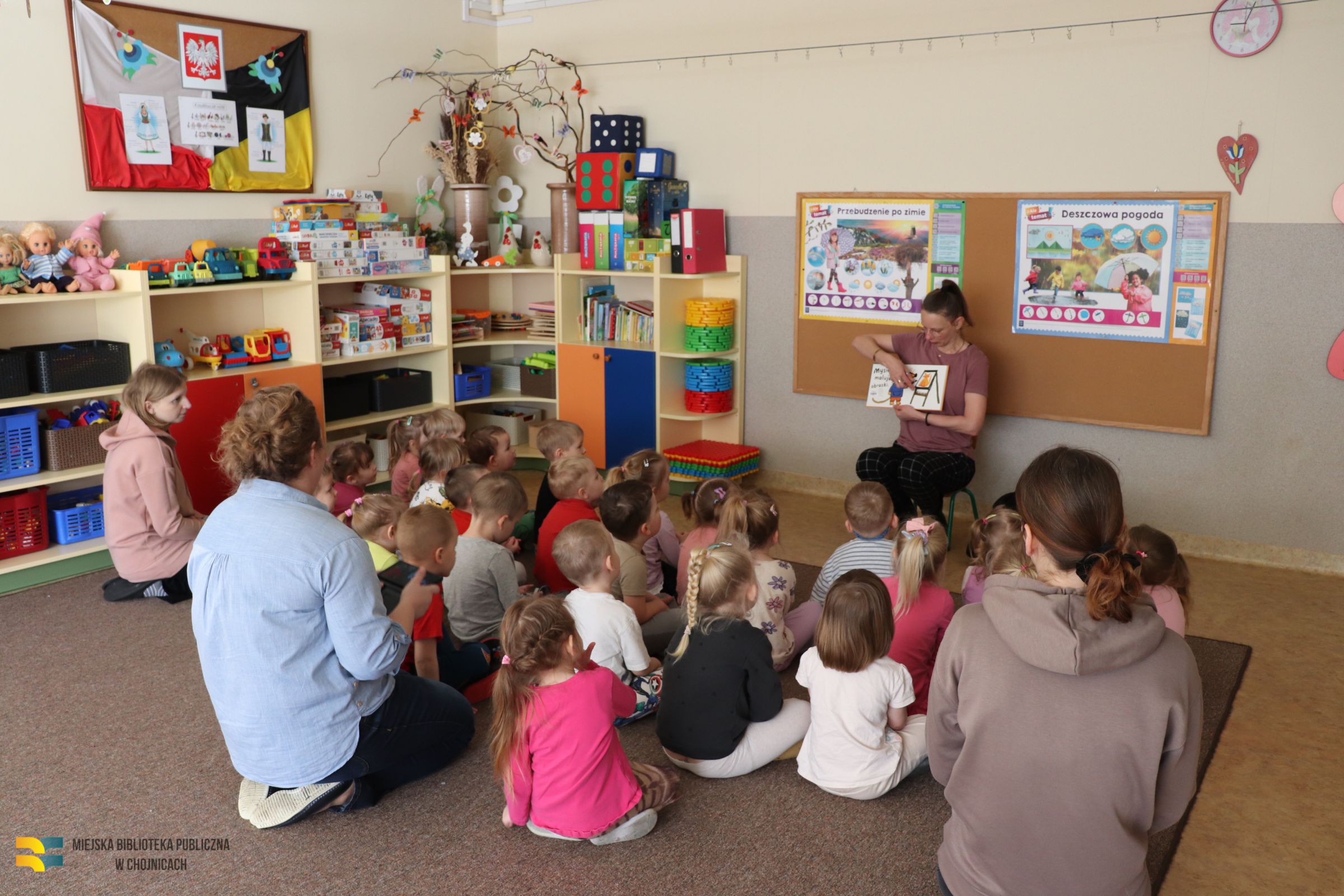 Bibliotekarki z Miejskiej Biblioteki Publicznej w Chojnicach wybrały się we wtorek 18 marca 2025 roku na zajęcia do trzyletnich dzieci, do Przedszkola Niepublicznego „Wesołe Przedszkolaki”.