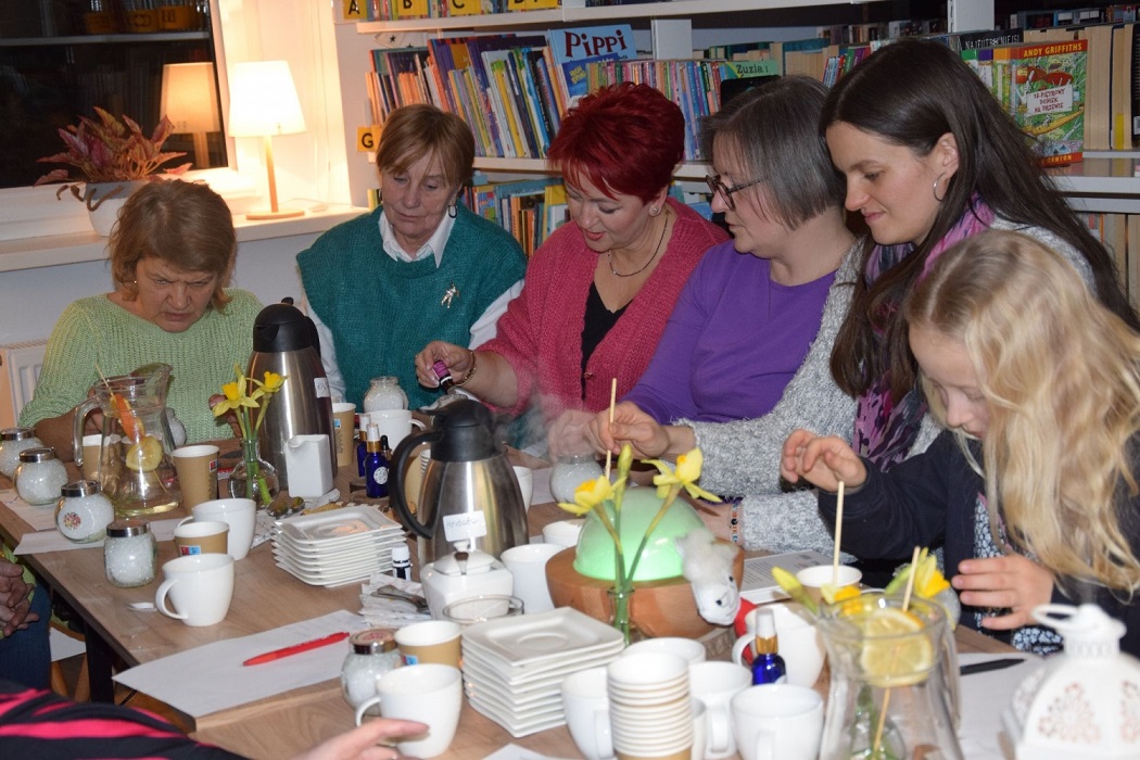Podczas warsztatów uczestniczki miały okazję zanurzyć się w świat zapachów i poznać właściwości różnych olejków eterycznych i ich zastosowań w codziennym życiu. Spotkanie w bibliotece, które cieszyło się ogromnym zainteresowaniem, było doskonałą okazją, aby połączyć przyjemność czytania z korzyściami płynącymi ze stosowania naturalnych metod wspierania zdrowia.