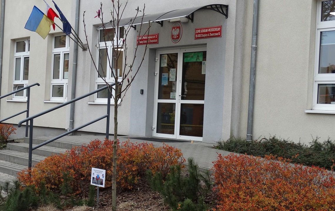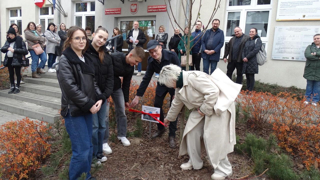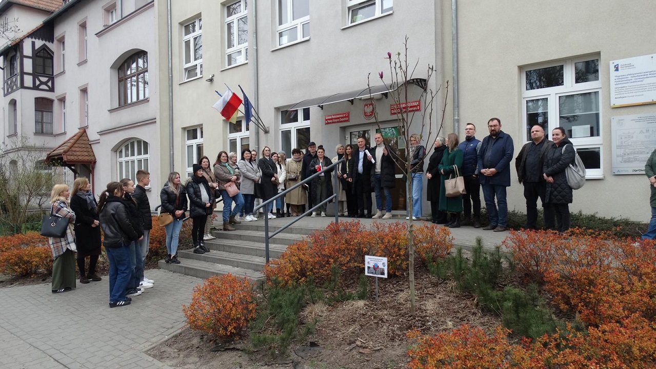 W obecności przedstawicieli Rady Rodziców, Samorządu Uczniowskiego, Dyrekcji Szkoły, nauczycieli i uczniów dokonano symbolicznego odsłonięcia krzewu magnolii posadzonego przed budynkiem szkoły wraz z tablicą upamiętniającą to wydarzenie.