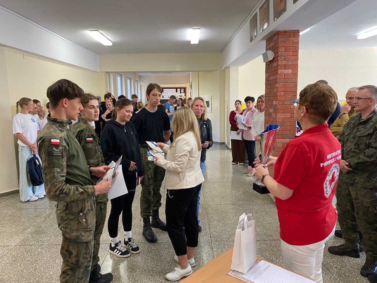 Na stanowisku Obrony Cywilnej najwyższe wyniki osiągnęli uczniowie Technikum nr 2 w Chojnicach. Nagrody ufundowane przez Starostę Chojnickiego wręczyła pani Irena Laska, Dyrektor Wydziału Edukacji i Sportu Starostwa Powiatowego w Chojnicach.