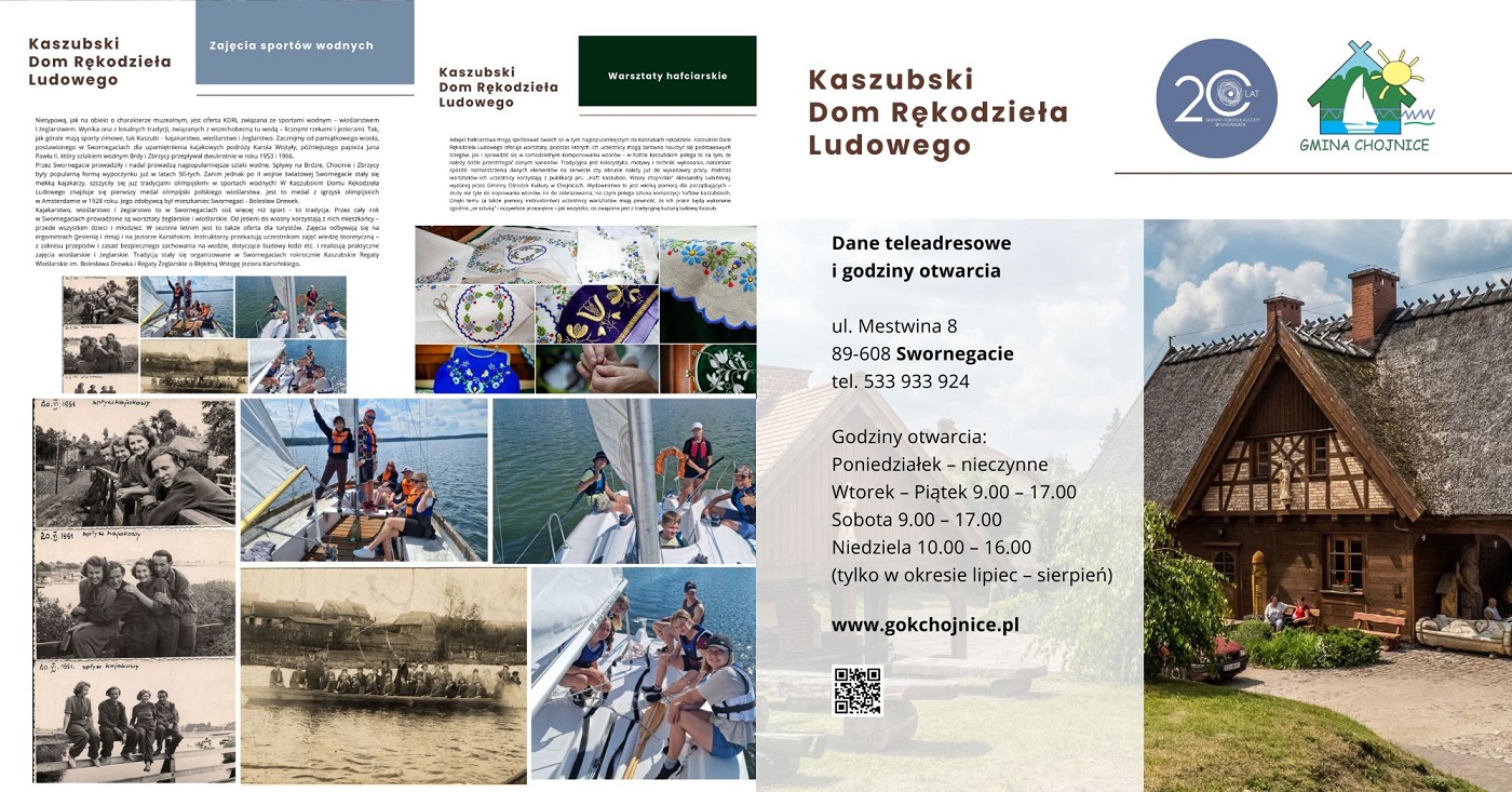 Kaszubski Dom Rękodzieła Ludowego to wizytówka Swornegaci. Placówka funkcjonuje od 2005 roku w strukturach Gminnego Ośrodka Kultury w Chojnicach. Przez blisko 20 lat działalności oferta KDRL jest systematycznie rozwijana, by obiekt jak najlepiej spełniał swoje funkcje – kulturalne, edukacyjne i promujące dziedzictwo regionu.