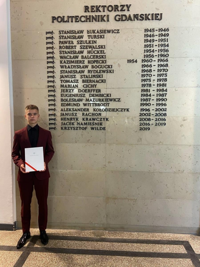 Na tym jednak nie kończą się jego sukcesy – Mateusz uzyskał także tytuł laureata w kuratoryjnym konkursie z fizyki, potwierdzając tym samym swoją wszechstronność i wybitne zdolności.
