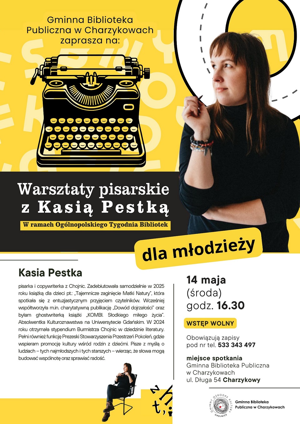 Zapraszamy młodzież na wyjątkowe warsztaty pisarskie z Kasią Pestką