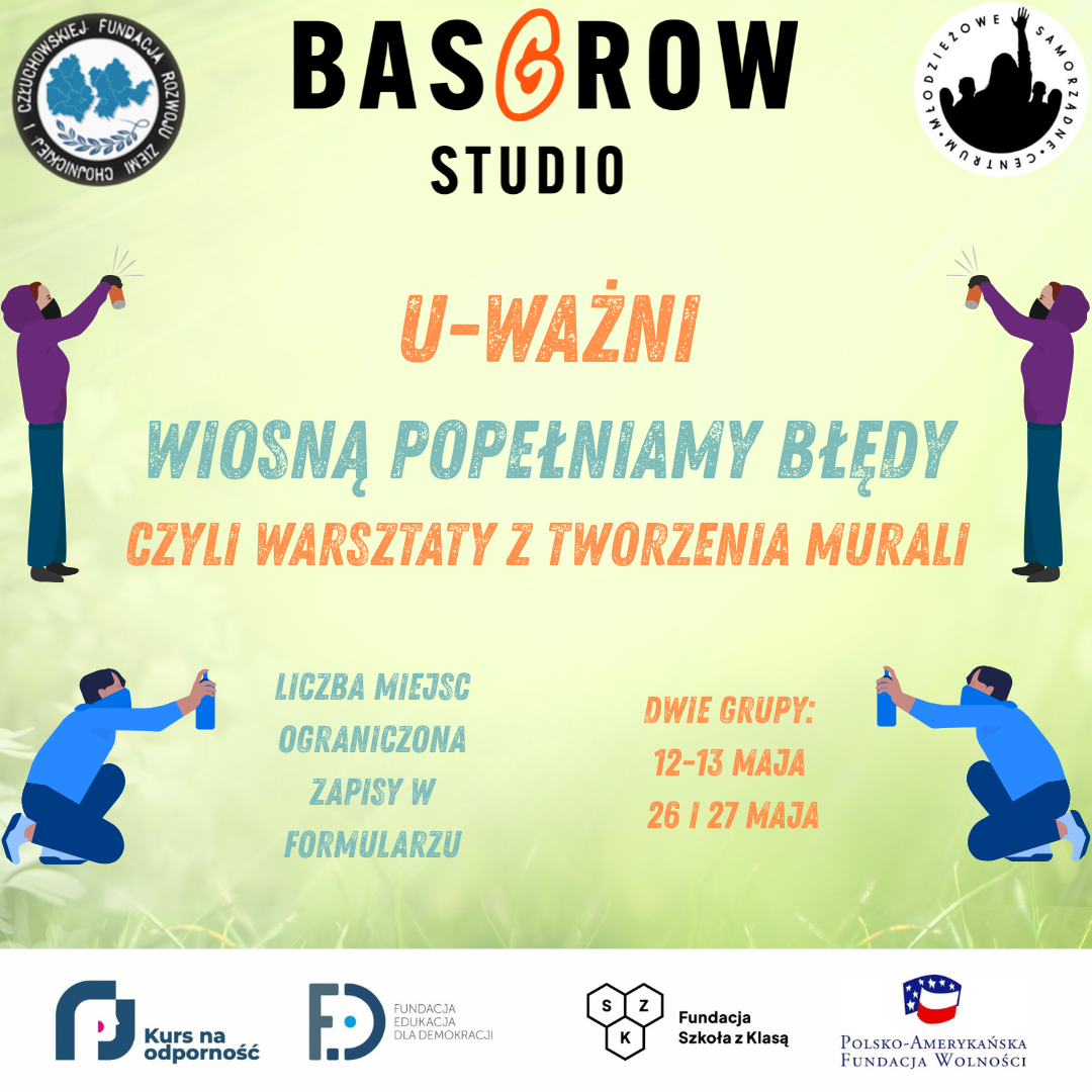 Wydarzenie organizowane jest przez Fundację Rozwoju Ziemi Chojnickiej i Człuchowskiej w ramach projektu "U-WAŻNI". Projekt współfinansowany ze środków Polsko-Amerykańskiej Fundacji Wolności w ramach programu Kurs na Odporność realizowanego wspólnie przez Fundację Edukacja dla Demokracji oraz Fundację Szkoła z Klasą. Zapraszamy serdecznie!