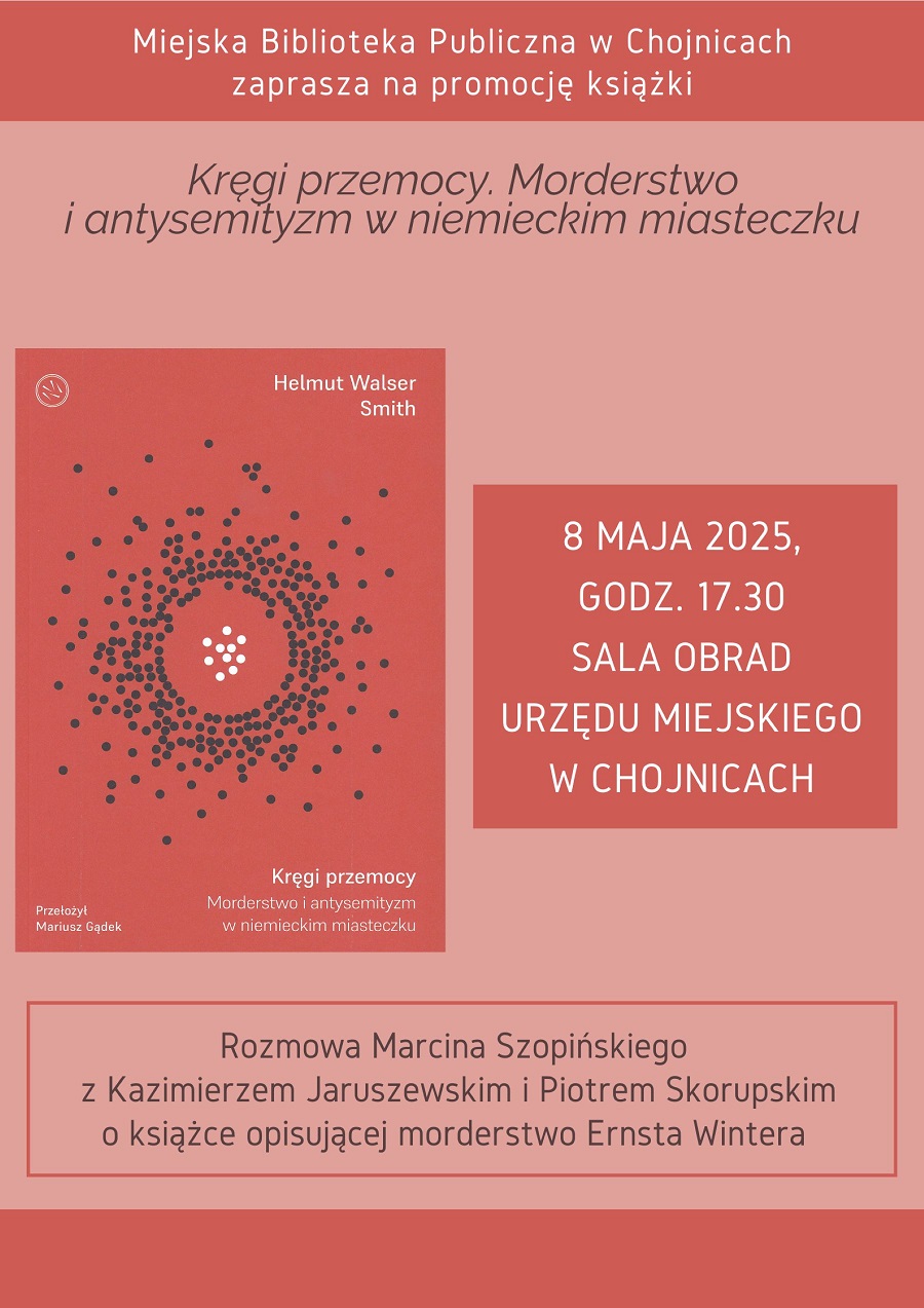 Zapraszamy na promocję nowego tłumaczenia książki Helmuta Walsera Smitha „Kręgi przemocy. Morderstwo i antysemityzm w niemieckim miasteczku” (tytuł oryginału „The Butcher’s Tale. Murder and Anti-Semitism in a German Town”) w przekładzie Mariusza Gądka.