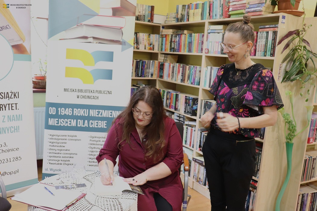 Spotkanie z pisarką odbyło się w ramach akcji Dwa tygodnie z książką. Od Dnia Książki do Dnia Bibliotekarza. Jej organizatorami byli stowarzyszenie LekTURa i Miejska Biblioteka Publiczna w Chojnicach, a dofinansowana została przez Urząd Miejski w Chojnicach i Starostwo Powiatowe w Chojnicach.