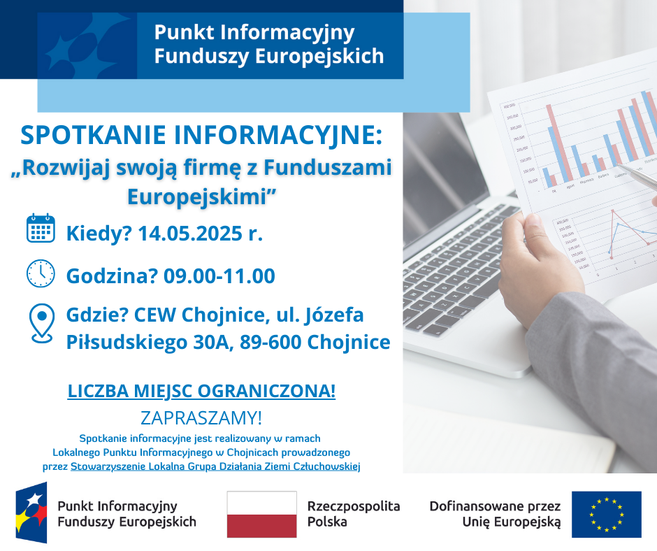 Lokalny Punkt Informacyjny Funduszy Europejskich w Chojnicach zaprasza na bezpłatne spotkanie informacyjne „Rozwijaj swoją firmę z Funduszami Europejskimi”.