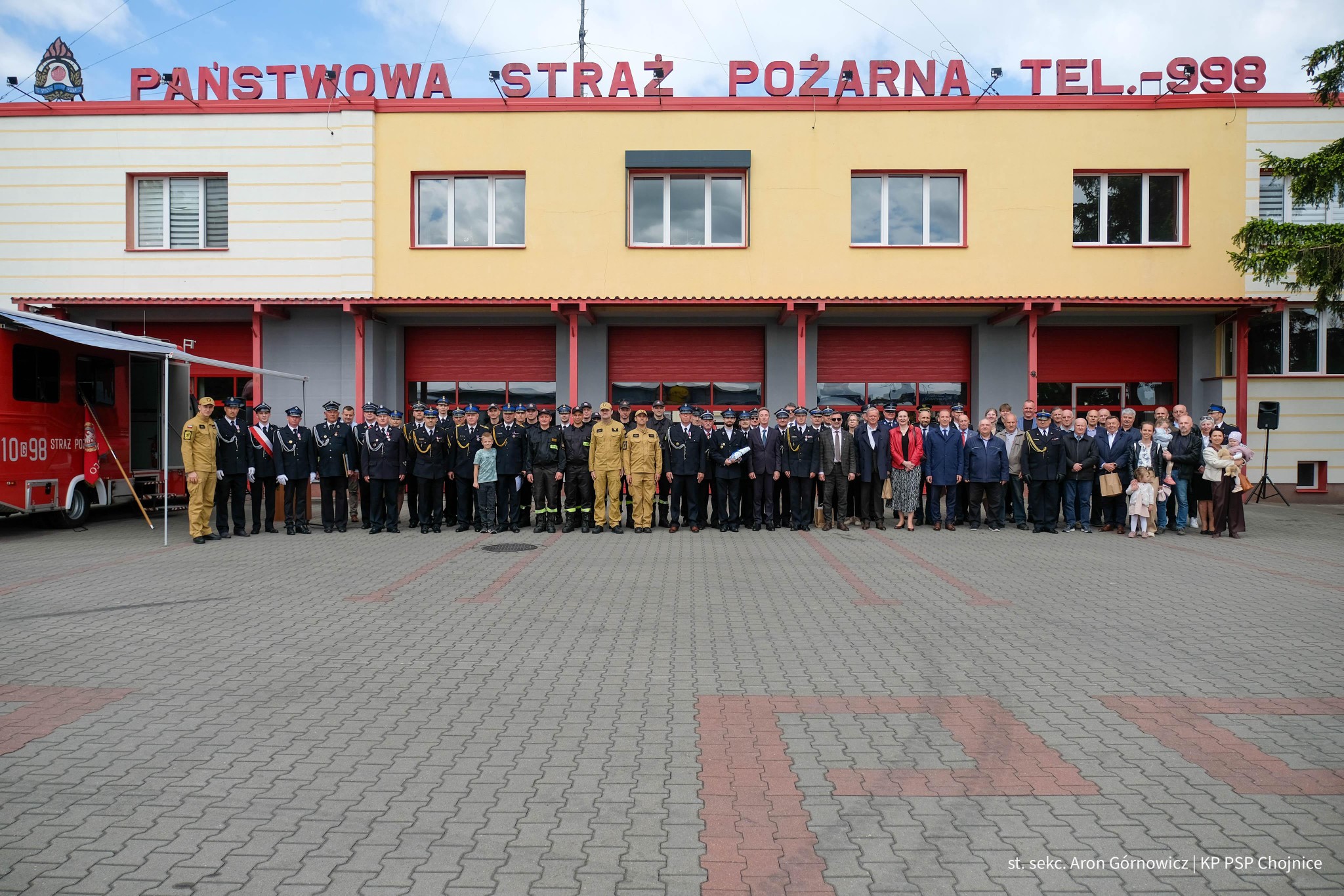Uroczystość miała charakter podniosły i oficjalny. Na miejscu pojawili się liczni goście: poseł na Sejm RP Stanisław Lamczyk, st. bryg. Bartłomiej Mollin – Zastępca Pomorskiego Komendanta Wojewódzkiego PSP, a także przedstawiciele samorządów, służb mundurowych, nadleśnictw, firm wspierających straż oraz emerytowani funkcjonariusze. Nie zabrakło także rodzin strażaków, które z dumą i wzruszeniem przyglądały się ceremonii.