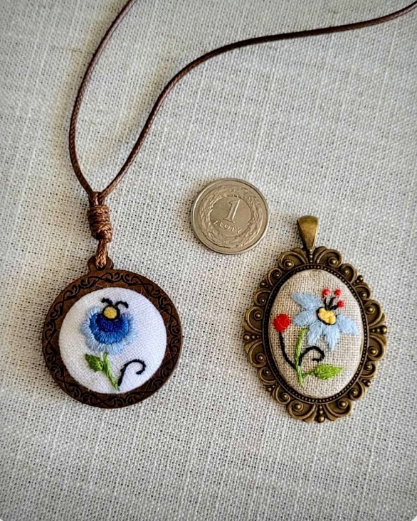 Na ostatnich zajęciach hafciarki zajmowały się dzieleniem lnu – jak się okazało nie jest łatwo równo przyciąć ogromny kupon materiału… Każda z nowych uczestniczek zajęć otrzymała także niezbędny zestaw nici w siedmiu kolorach. Dyskutowały też o tym, co chciałyby wyhaftować na otrzymanych kawałkach tkaniny. W planach są nowości – panie spróbują wykonać okładki na albumy fotograficzne (pamiętniki, notatniki etc.) oraz elementy biżuterii. Helena Pawłowska pokazała, jak takie cudeńka będą wyglądać po umieszczeniu haftów w specjalnych oprawkach!