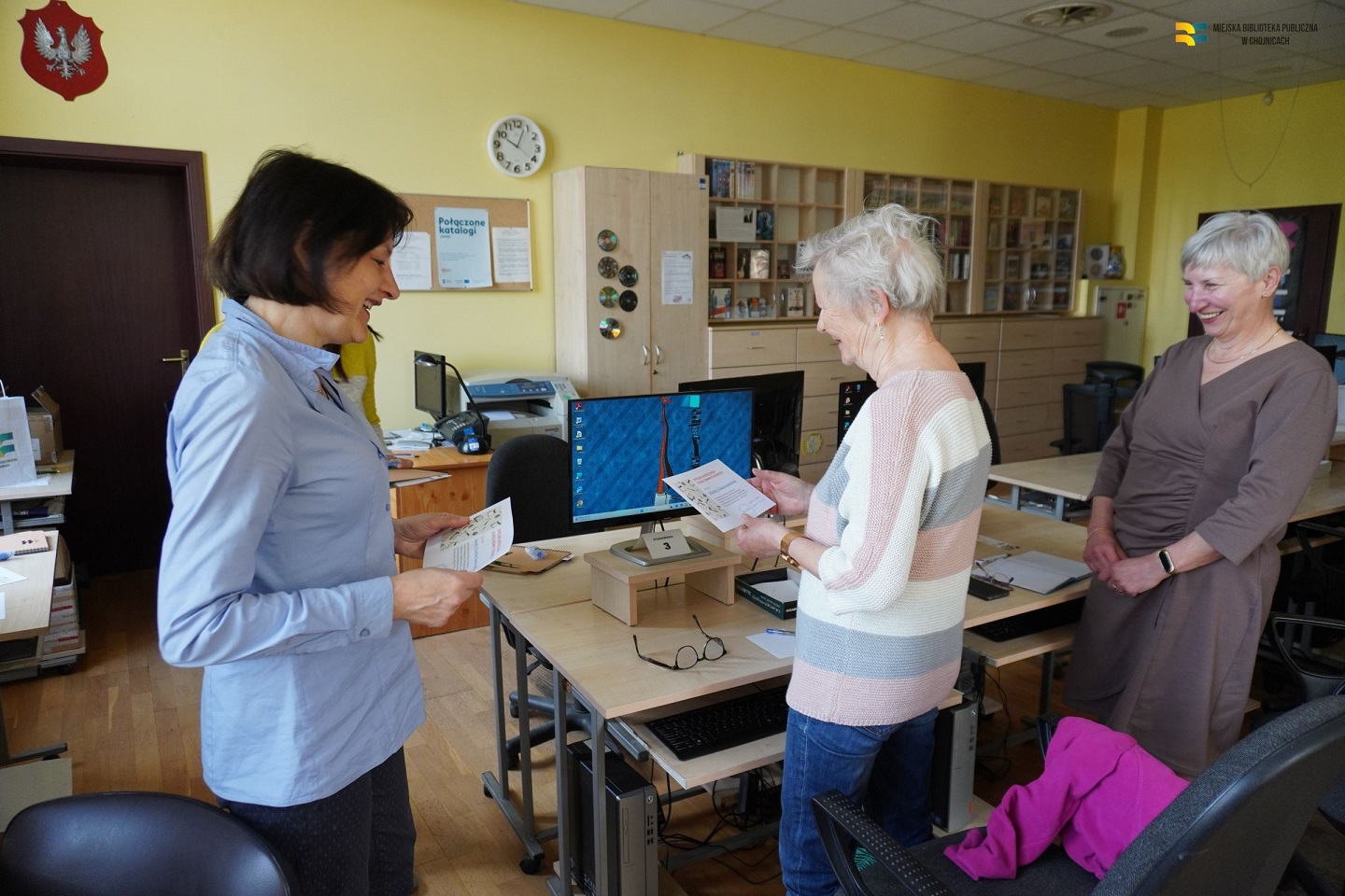 Na zakończenie zajęć seniorzy otrzymali pamiątkowe dyplomy i upominki od Miejskiej Biblioteki Publicznej w Chojnicach. Bibliotekarki pogratulowały uczestnikom ukończenia kursu, pochwaliły za aktywność i za postępy. Zachęcały także do dalszych odwiedzin Mediateki i korzystania z różnorodnych usług bibliotecznych. Natomiast kursanci dziękowali bibliotekarkom za przeprowadzony kurs i cierpliwość.