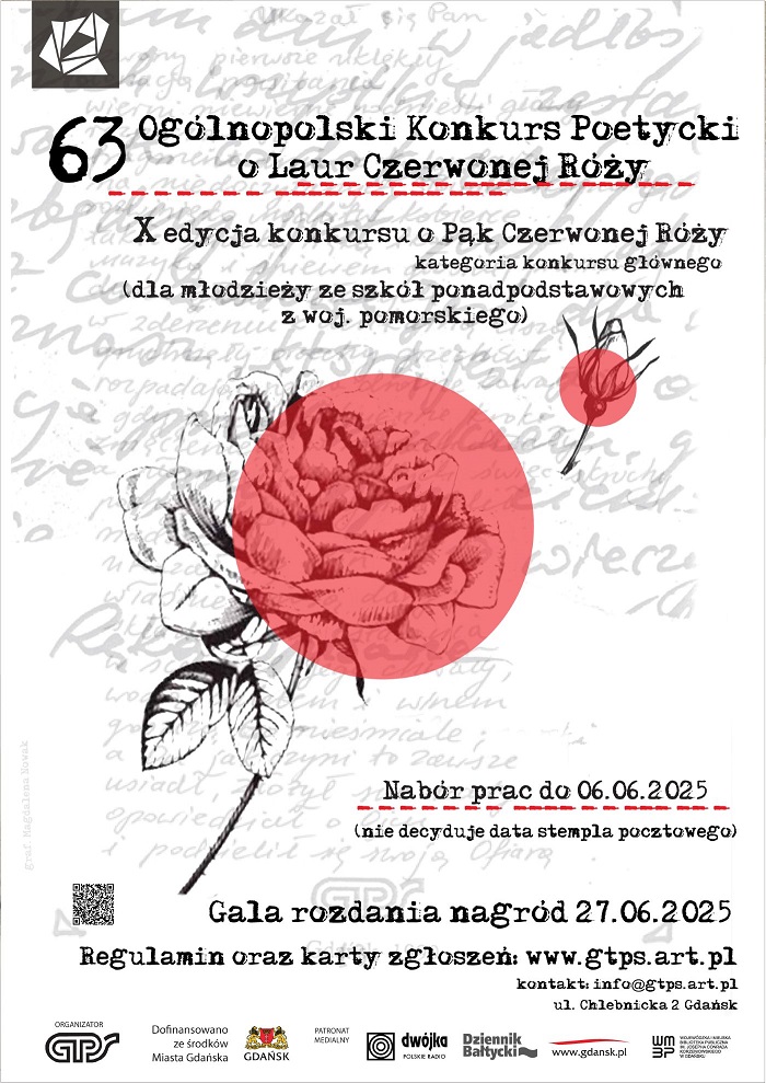 Zachęcamy do udziału w 63. Ogólnopolskim Konkursie Poetyckim o Laur Czerwonej Róży, organizowanym przez Gdańskie Towarzystwo Przyjaciół Sztuki.