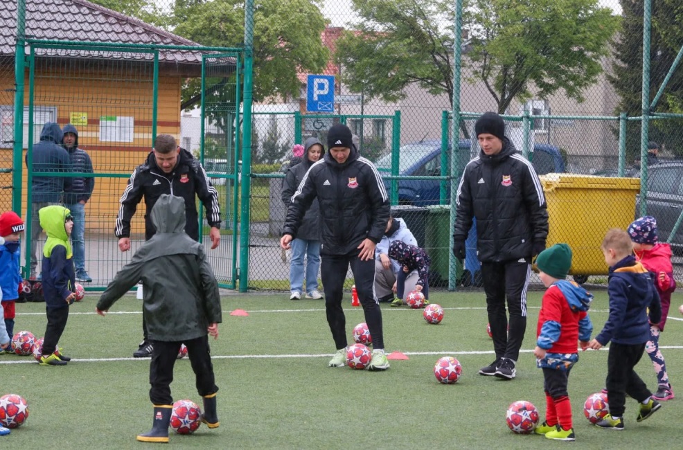 Pomimo niesprzyjającej pogody trener Maciej Kuczkowski przeprowadził pełne energii zajęcia, na których pojawiło się liczne grono dziewczynek i chłopców z rocznika 2020. W rolę pomocników i asystentów wcielili się zawodnicy pierwszej drużyny Chojniczanki – Marcin Kozina oraz Patryk Olejnik.