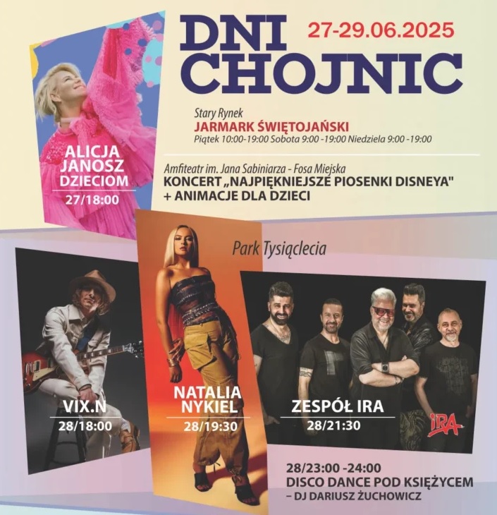 18:00 - koncert pt. "Najpiękniejsze piosenki Disneya" w wykonaniu chojnickich muzyków: Weroniki Sajnaj, Janusza Łangowskiego, Wiesława Galikowskiego i Bartka Nowaka