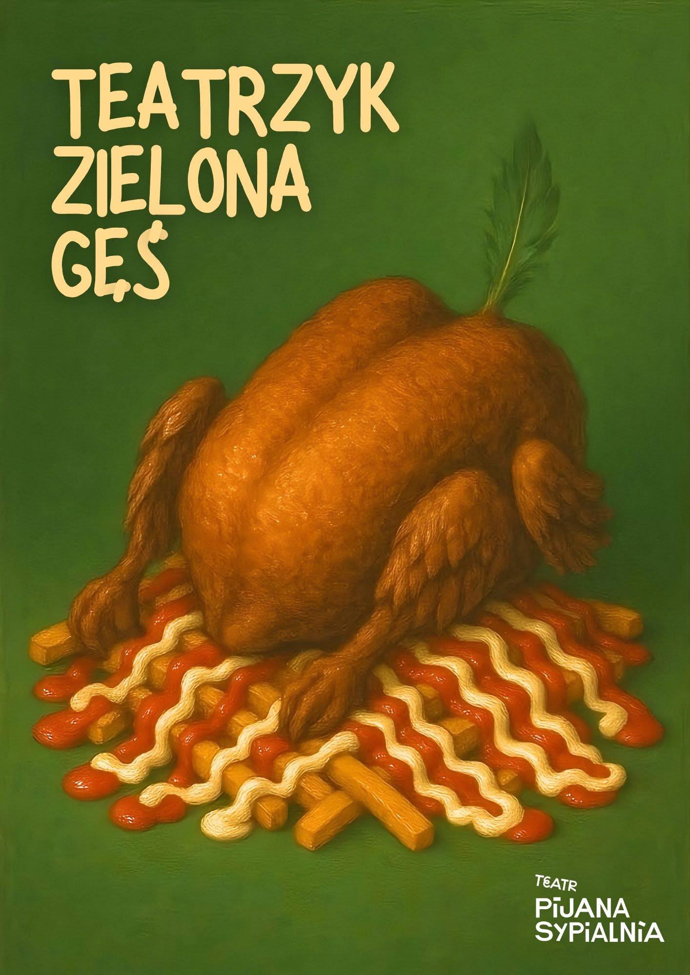 Spektakl, muzyczny kabaret literacki, rozgrywany jest w świecie na skraju szaleństwa. Deszcz leje. Autobus nie przyjeżdża. Ludzie peklują się w słojach na ogórki. Na szczęście jest on – Donald Makbomba – Wielki Przyjaciel Polski. Wytycza strefę neutralną, gdzie każdy może czuć się sobą, oczywiście w granicach ustalonych norm. Nie jest łatwo, bo Społeczeństwo musi zaciskać pasa. W końcu drożeje nawet… poezja. I wtedy pojawia pojawia się ona – Zielona Gęś, zielona jak nadzieja! Zaczyna się walka o wpływy w strefie neutralnej. W spektaklu z muzyką na żywo nie zabraknie lirycznych kompozycji z tekstami Gałczyńskiego, ale muzyczne światy zderzane są ze sobą niejednokrotnie w zaskakujący sposób. „Teatrzyk Zielona Gęś” był antidotum na ówczesną sytuację świata. Czy współcześnie literatura, muzyka i poezja również może przynieść nam ukojenie?