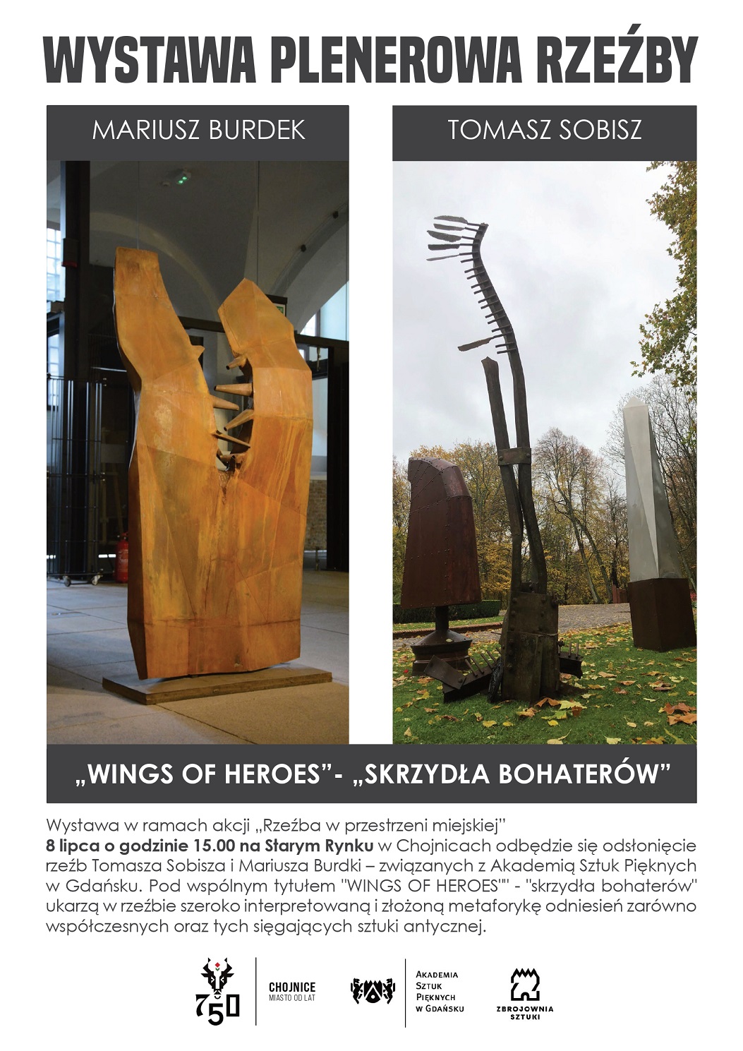 Odsłonięcie rzeźb na Starym Rynku w Chojnicach odbędzie się 8 lipca o godzinie 15.00. Rzeźbiarze Tomasz Sobisz i Mariusza Burdka – związani z Akademią Sztuk Pięknych w Gdańsku pod wspólnym tytułem "WINGS OF HEROES" ukarzą w rzeźbie szeroko interpretowaną i złożoną metaforykę odniesień zarówno współczesnych oraz tych sięgających sztuki antycznej.