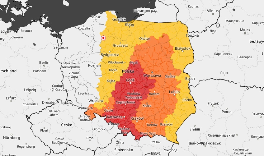 Prognozowane są burze, którym miejscami będą towarzyszyć silne opady deszczu do 20 mm do 35 mm oraz porywy wiatru do 65 km/h. Lokalnie grad.