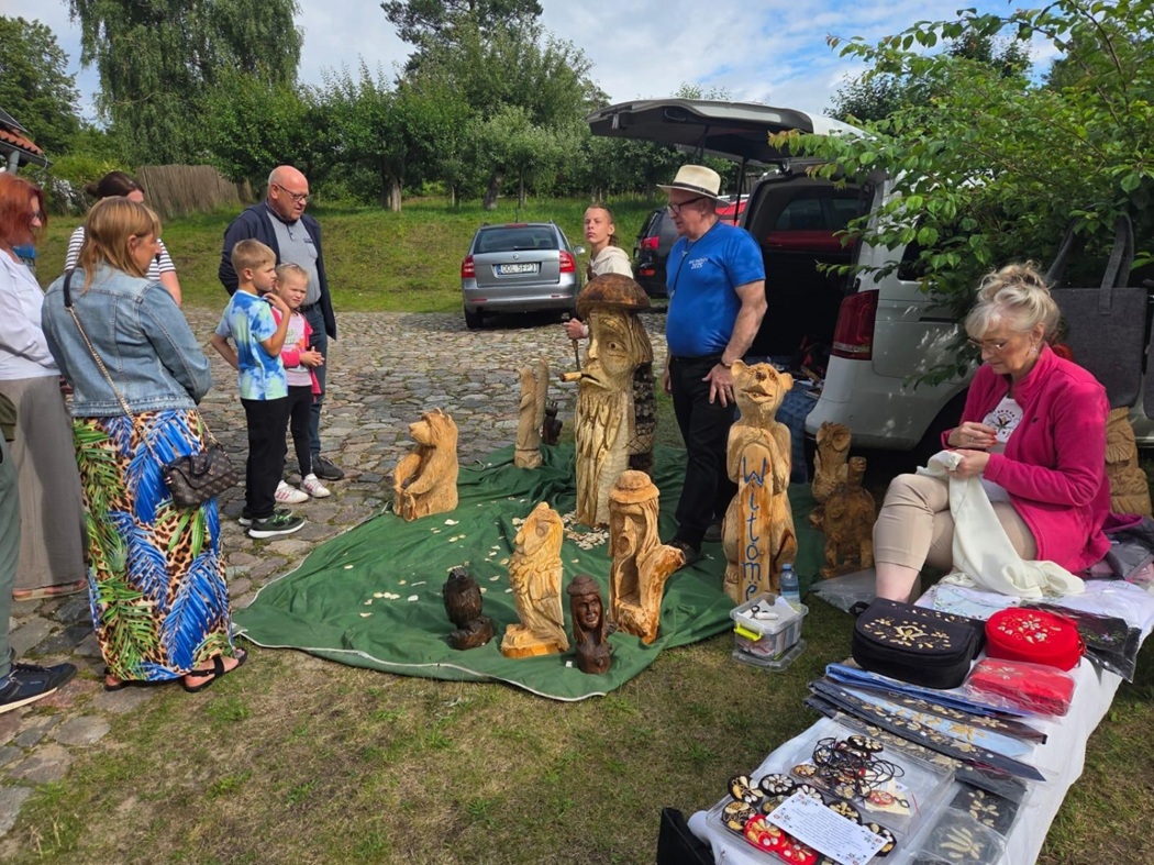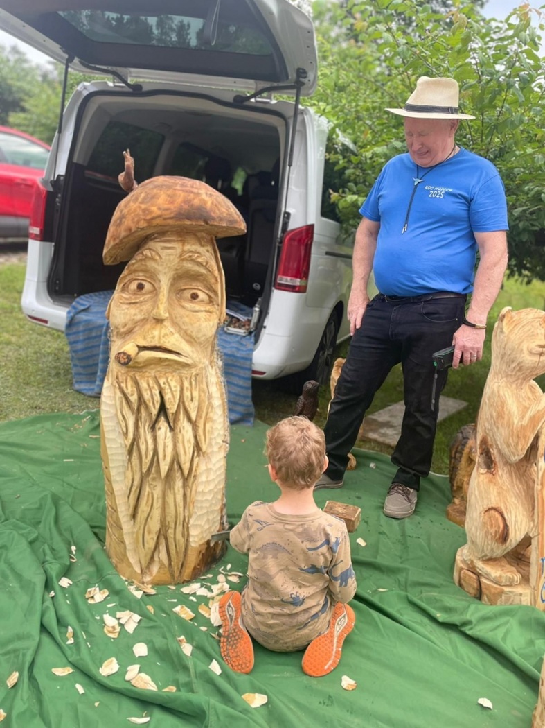 W miniony czwartek mieszkańcy i goście Swornegaci mieli okazję uczestniczyć w wyjątkowym spotkaniu z rzeźbiarzem Grzegorzem Szopińskim. Artysta przygotował rzeźbę, która jednocześnie pełni funkcję domku dla owadów zapylających. Powstała figura „starego grzyba” – symboliczna i praktyczna zarazem. Z przymrużeniem oka przypomina, że to, co stare zbutwiałe czy porośnięte mchem ma ważne miejsce w naturalnym cyklu życia. W tworzeniu tej rzeźby mogli też uczestniczyć widzowie, z czego szczególnie chętnie skorzystali najmłodsi – docinając, szlifując i wygładzając poszczególne elementy. „Stary grzyb” stanie teraz w ogrodzie przy Kaszubskim Domu Rękodzieła Ludowego – mamy nadzieję, że owady zapylające skorzystają z zaproszenia!