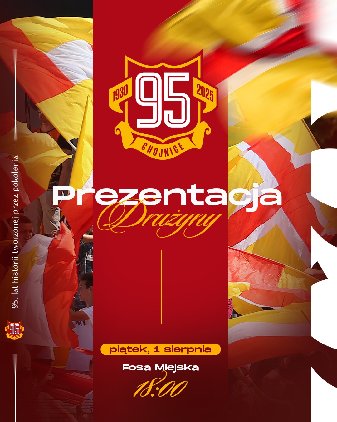 W piątek, 1 sierpnia o godzinie 18:00 w Fosie Miejskiej w Chojnicach odbędzie się wyjątkowe wydarzenie – po raz pierwszy w historii zaprezentowana zostanie drużyna Chojniczanki w otwartej formule, w samym sercu miasta. Klub zaprasza wszystkich kibiców, mieszkańców oraz sympatyków żółto-biało-czerwonych barw do wspólnego rozpoczęcia nowego sezonu w niecodziennej scenerii i atmosferze.