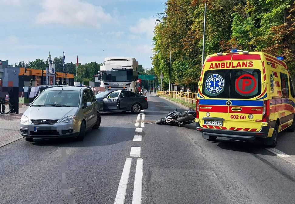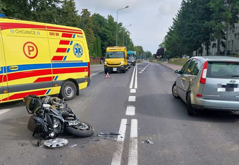 Ze wstępnych ustaleń policjantów wynika, że kierowca forda, 88-letni mieszkaniec Chojnic, podczas włączania się do ruchu z zatoki autobusowej nie ustąpił pierwszeństwa motocykliście jadącemu yamahą, 28-letniemu mieszkańcowi Chojnic. Mężczyzna ten został przewieziony do szpitala.