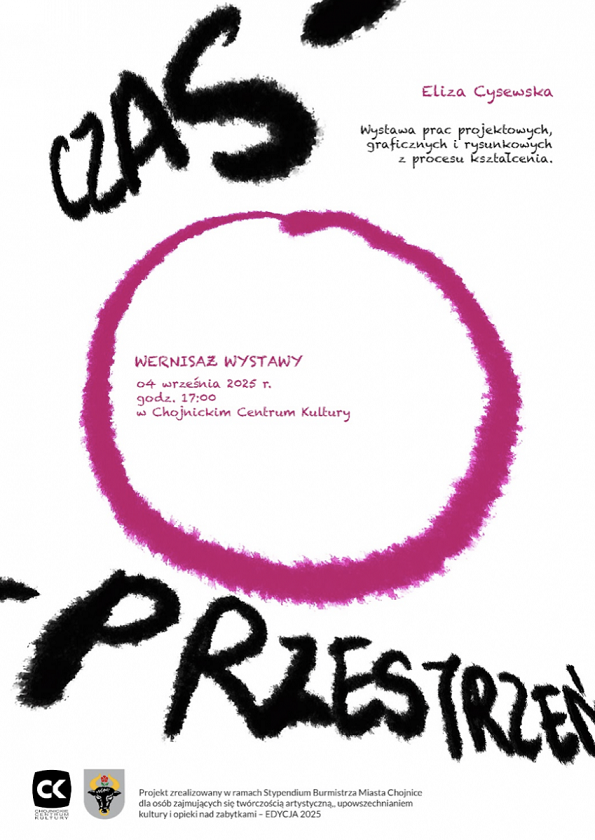 Chojnickie Centrum Kultury zaprasza na wernisaż wystawy Elizy Cysewskiej pt. "Czas-o-przestrzeń" 4 września o godz. 17:00 w sali wystawowej.