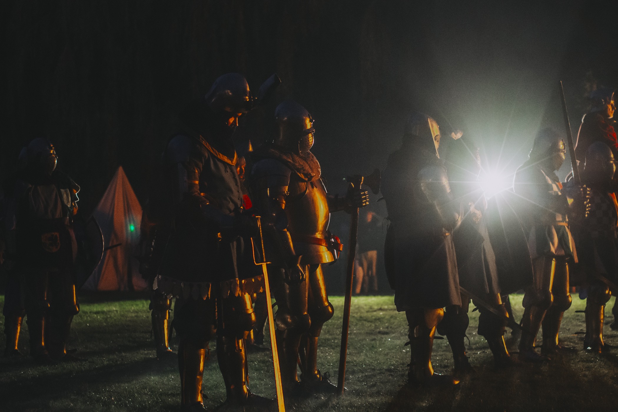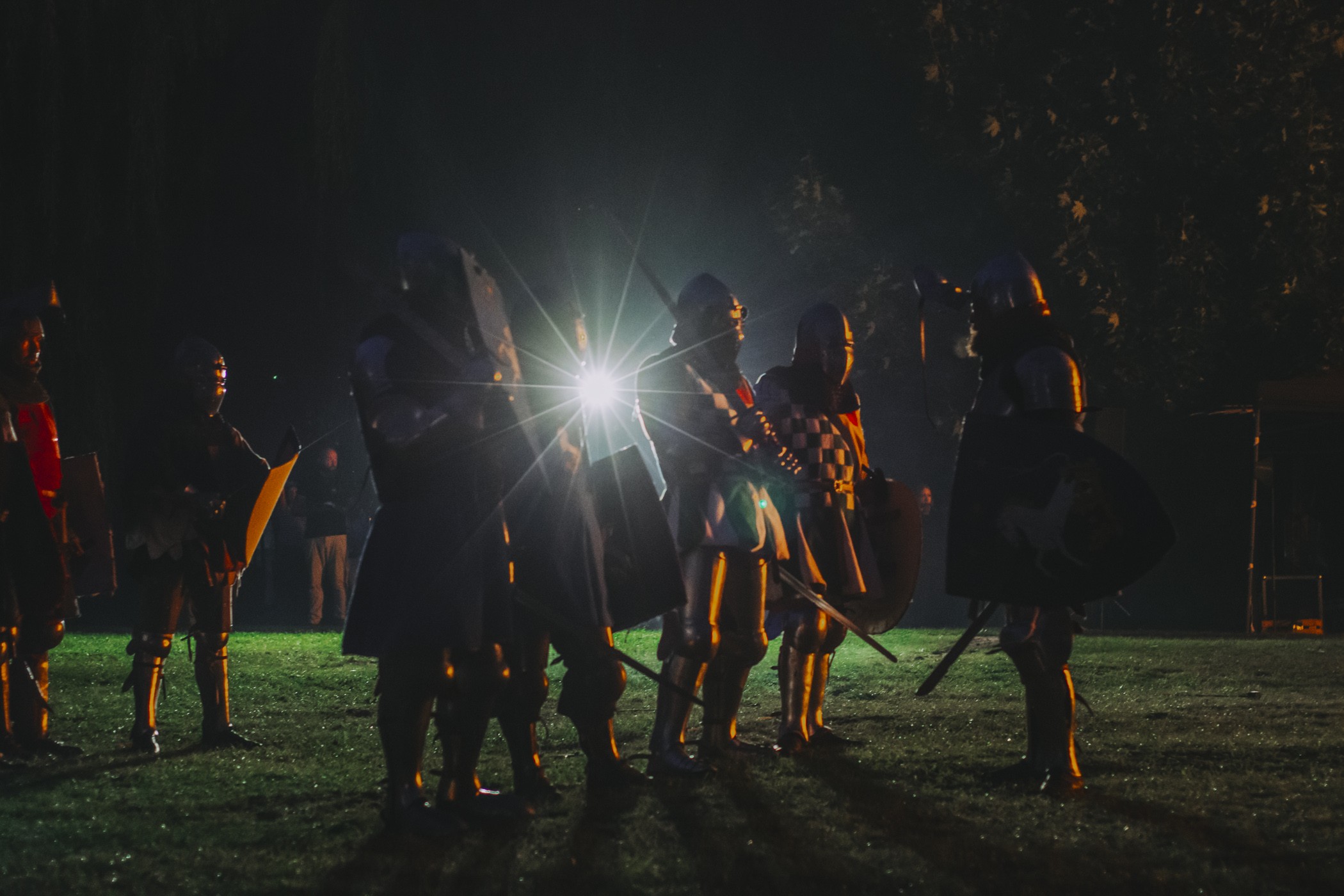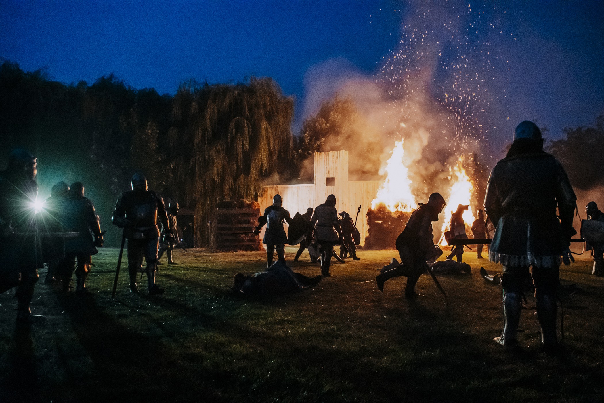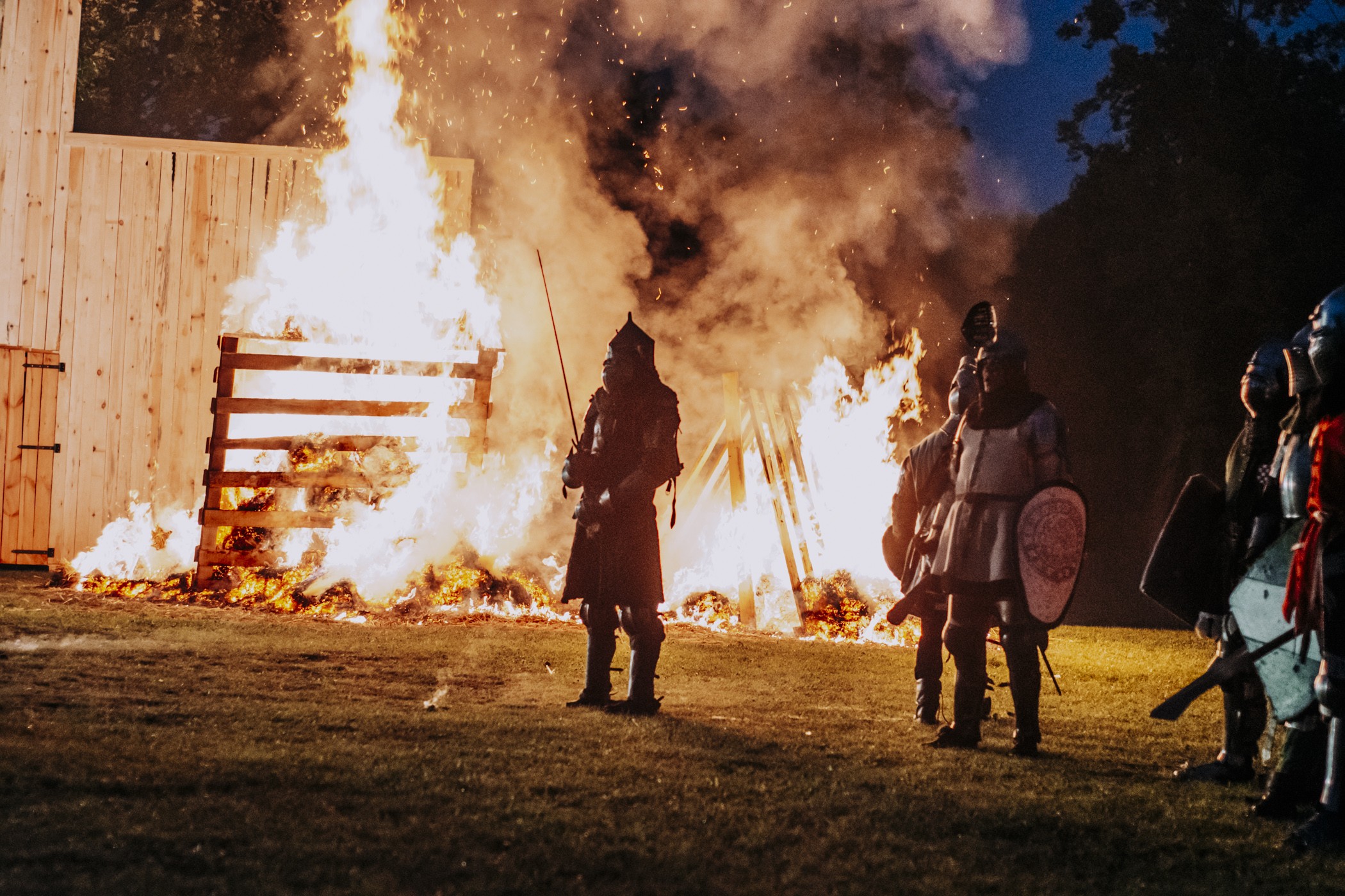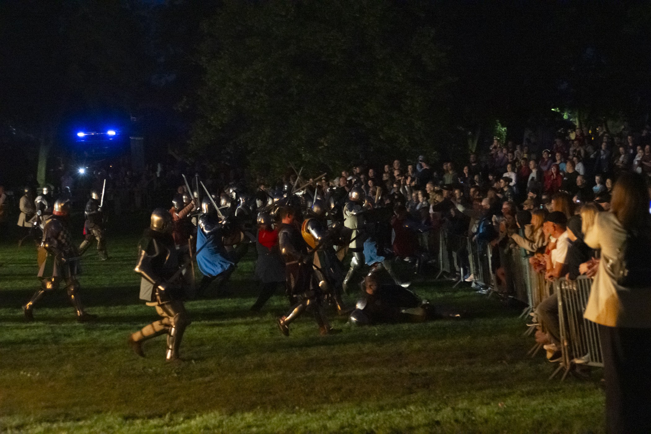 O 20:00 publiczność wstrzymała oddech, gdy rozpoczęła się wielka inscenizacja bitwy pod Chojnicami. Huk, wrzawa i walka na całego – tym razem bez ofiar, za to z ogromnym ładunkiem adrenaliny i emocji. A gdy zapadła noc, nad parkiem rozbłysło fireshow grupy Tempora Militum. Ogień tańczył w rytmie bębnów, a zgromadzeni wiedzieli, że oto zakończyła się prawdziwa uczta dla wojowników i gawiedzi.