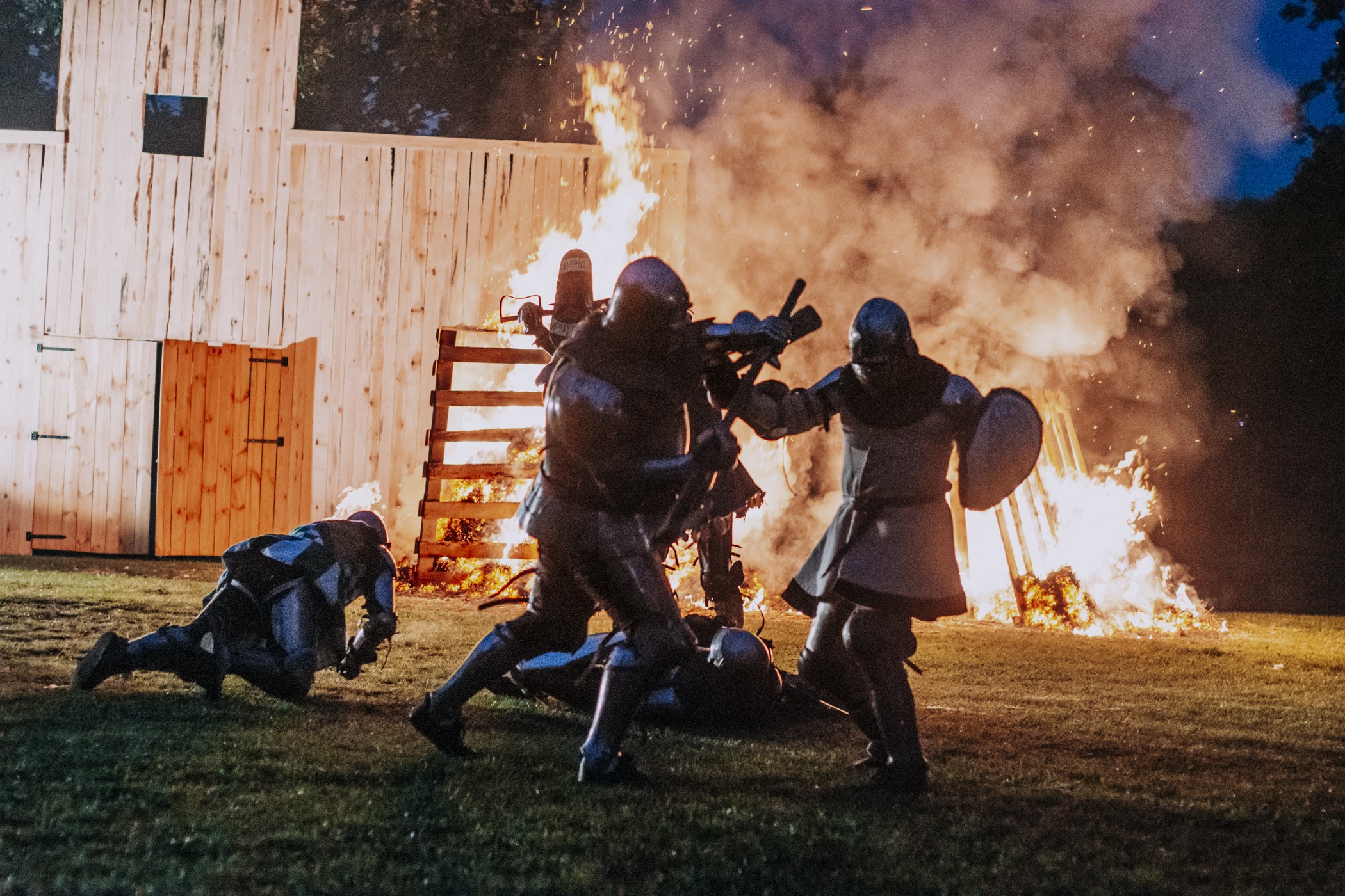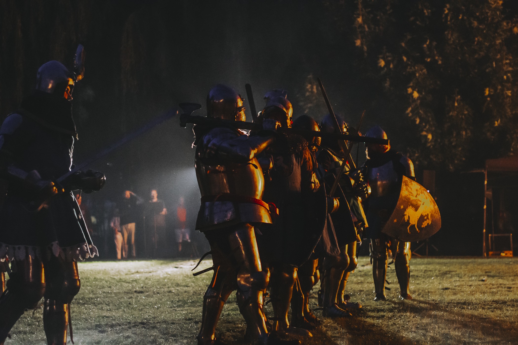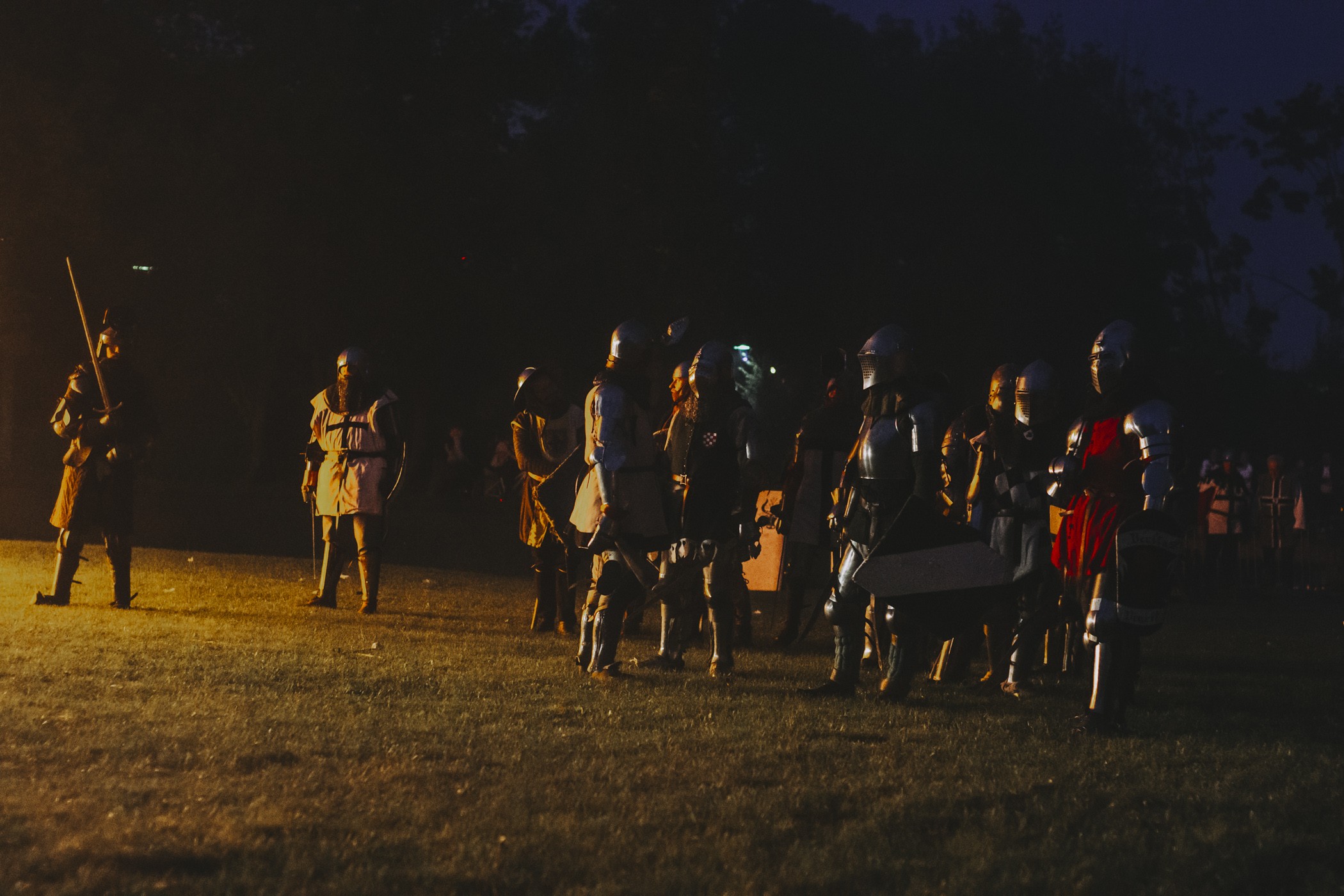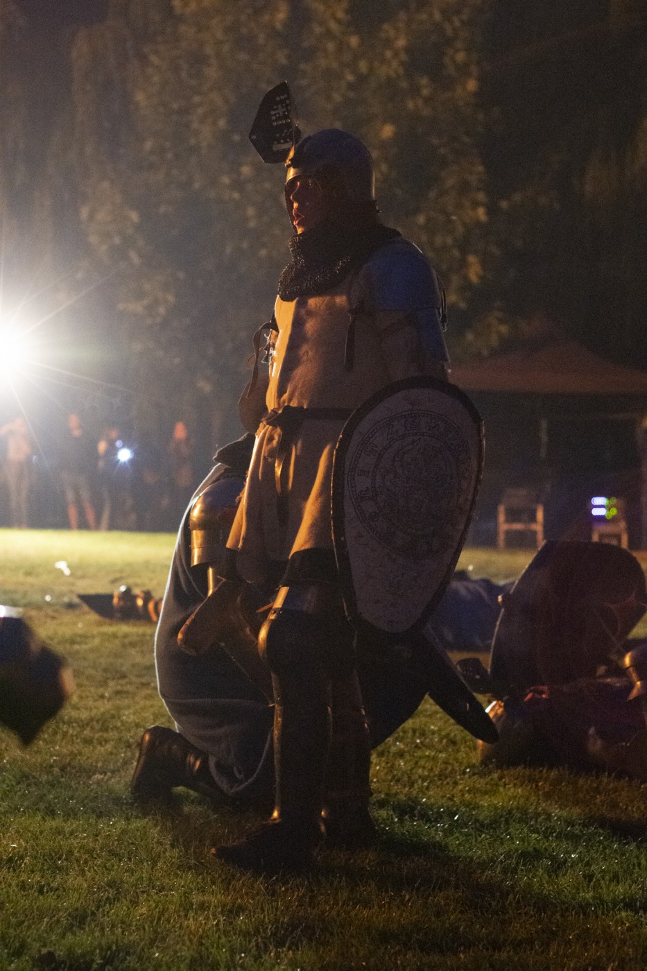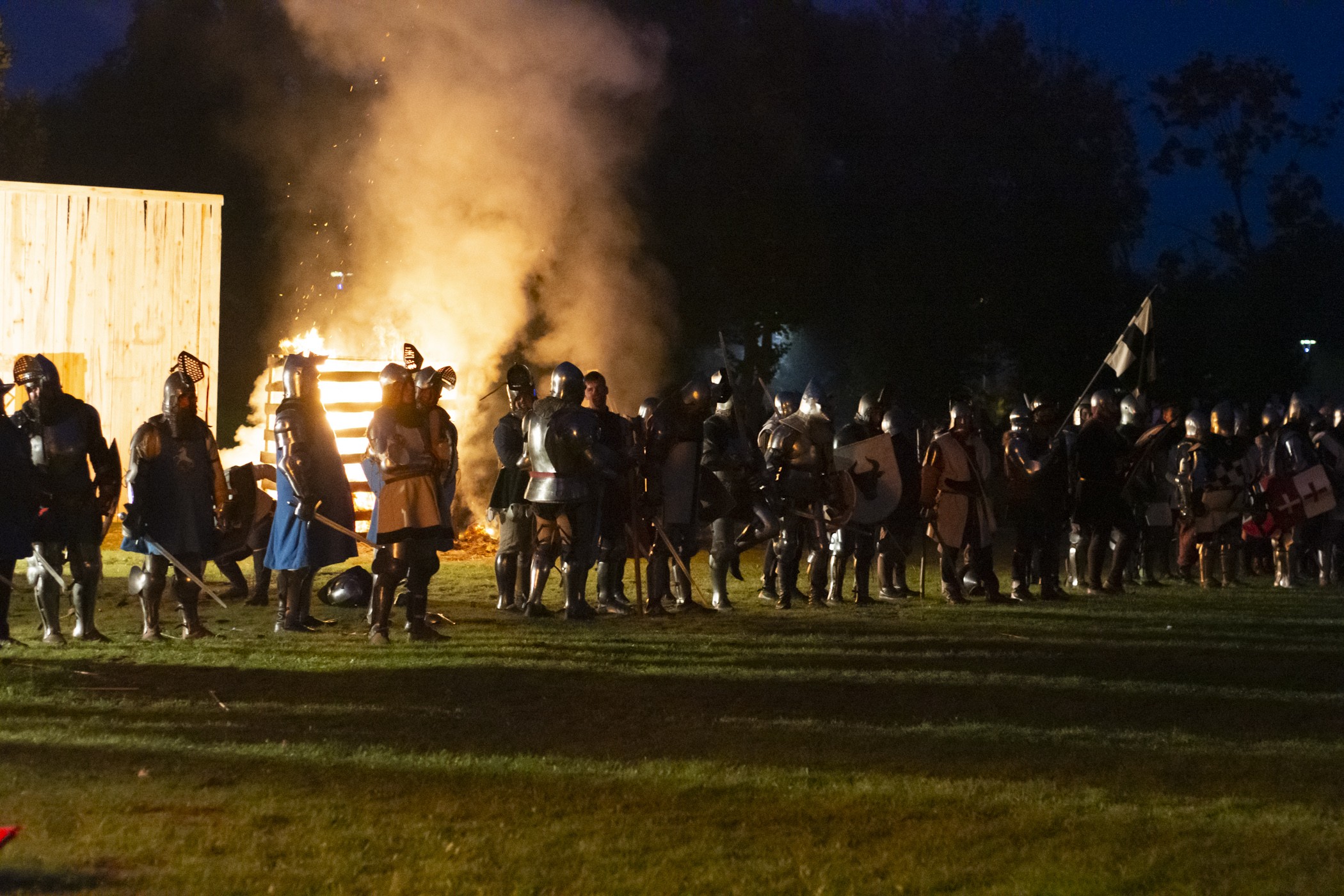O 20:00 publiczność wstrzymała oddech, gdy rozpoczęła się wielka inscenizacja bitwy pod Chojnicami. Huk, wrzawa i walka na całego – tym razem bez ofiar, za to z ogromnym ładunkiem adrenaliny i emocji. A gdy zapadła noc, nad parkiem rozbłysło fireshow grupy Tempora Militum. Ogień tańczył w rytmie bębnów, a zgromadzeni wiedzieli, że oto zakończyła się prawdziwa uczta dla wojowników i gawiedzi.