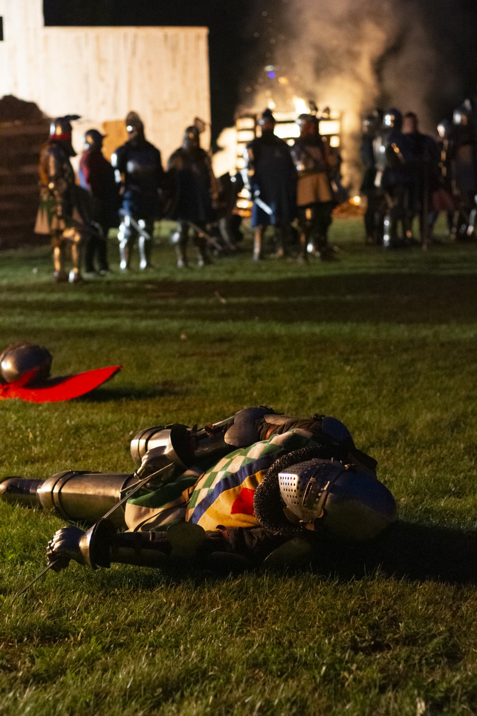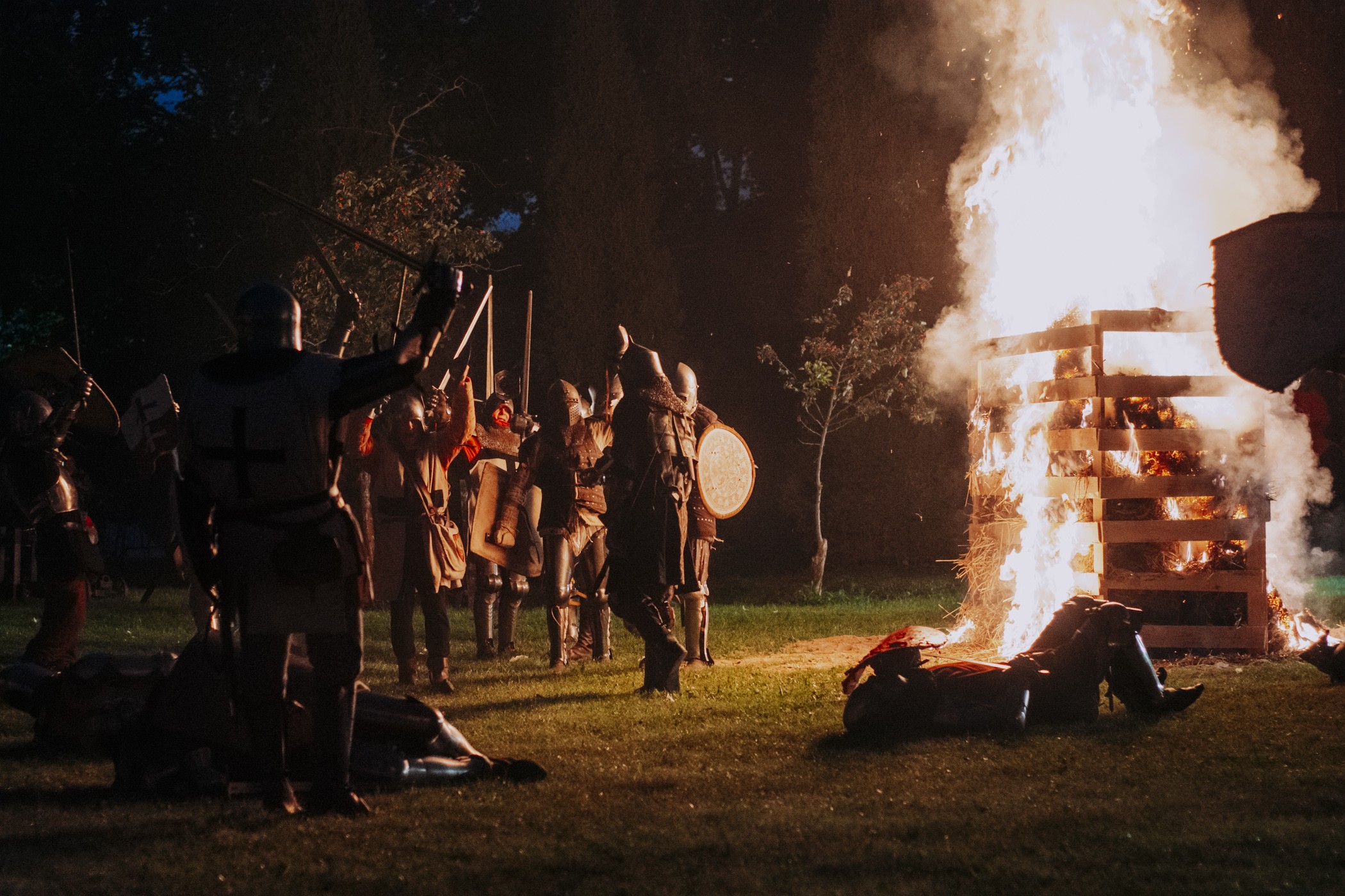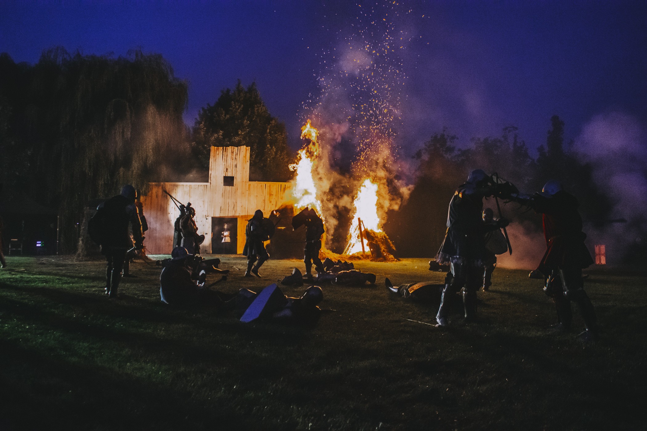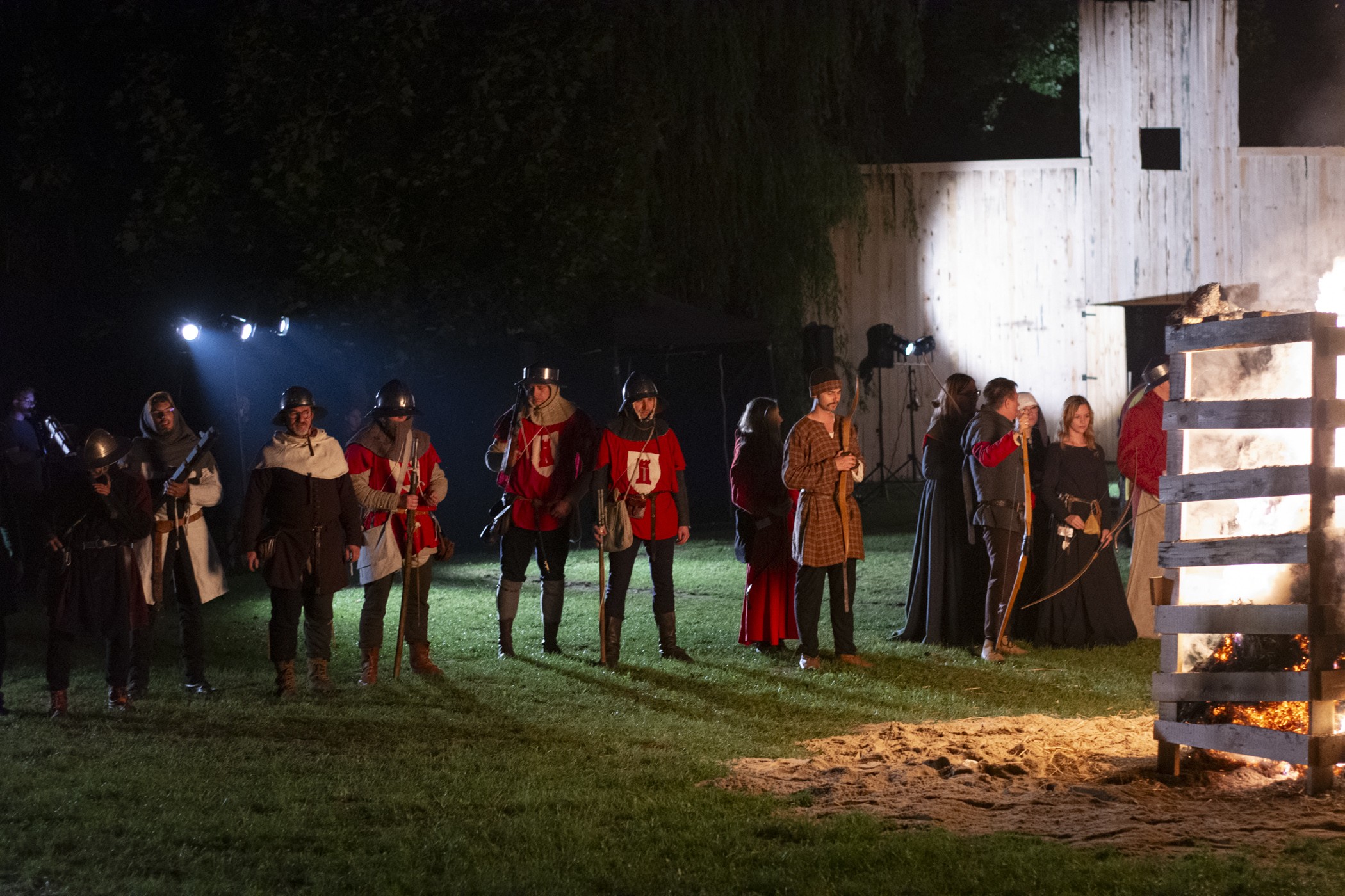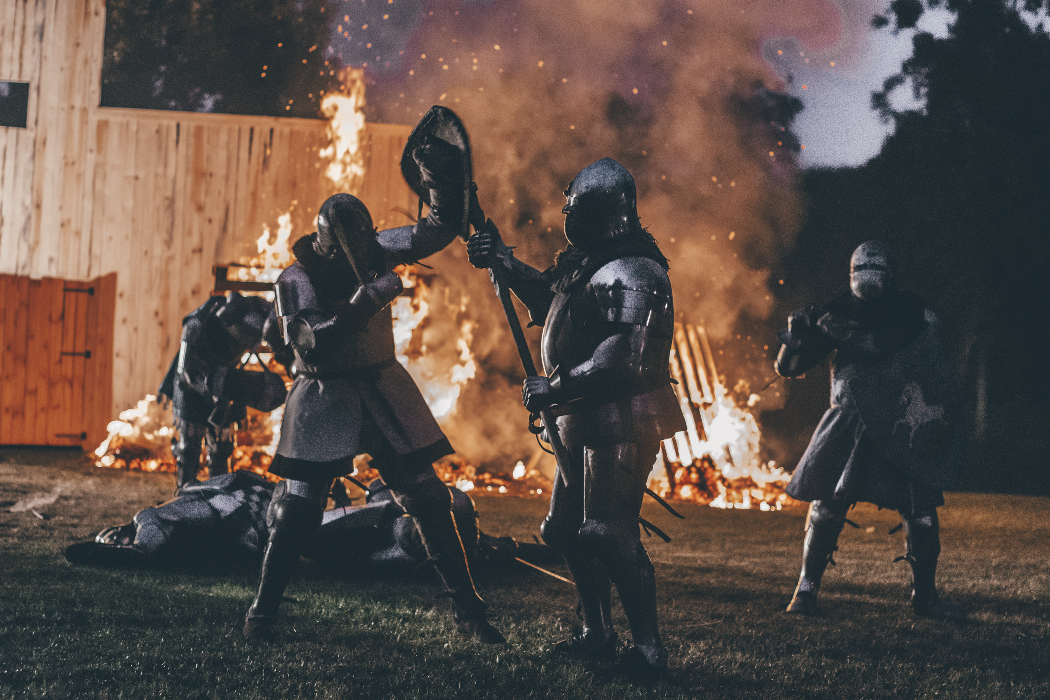 O 20:00 publiczność wstrzymała oddech, gdy rozpoczęła się wielka inscenizacja bitwy pod Chojnicami. Huk, wrzawa i walka na całego – tym razem bez ofiar, za to z ogromnym ładunkiem adrenaliny i emocji. A gdy zapadła noc, nad parkiem rozbłysło fireshow grupy Tempora Militum. Ogień tańczył w rytmie bębnów, a zgromadzeni wiedzieli, że oto zakończyła się prawdziwa uczta dla wojowników i gawiedzi.