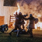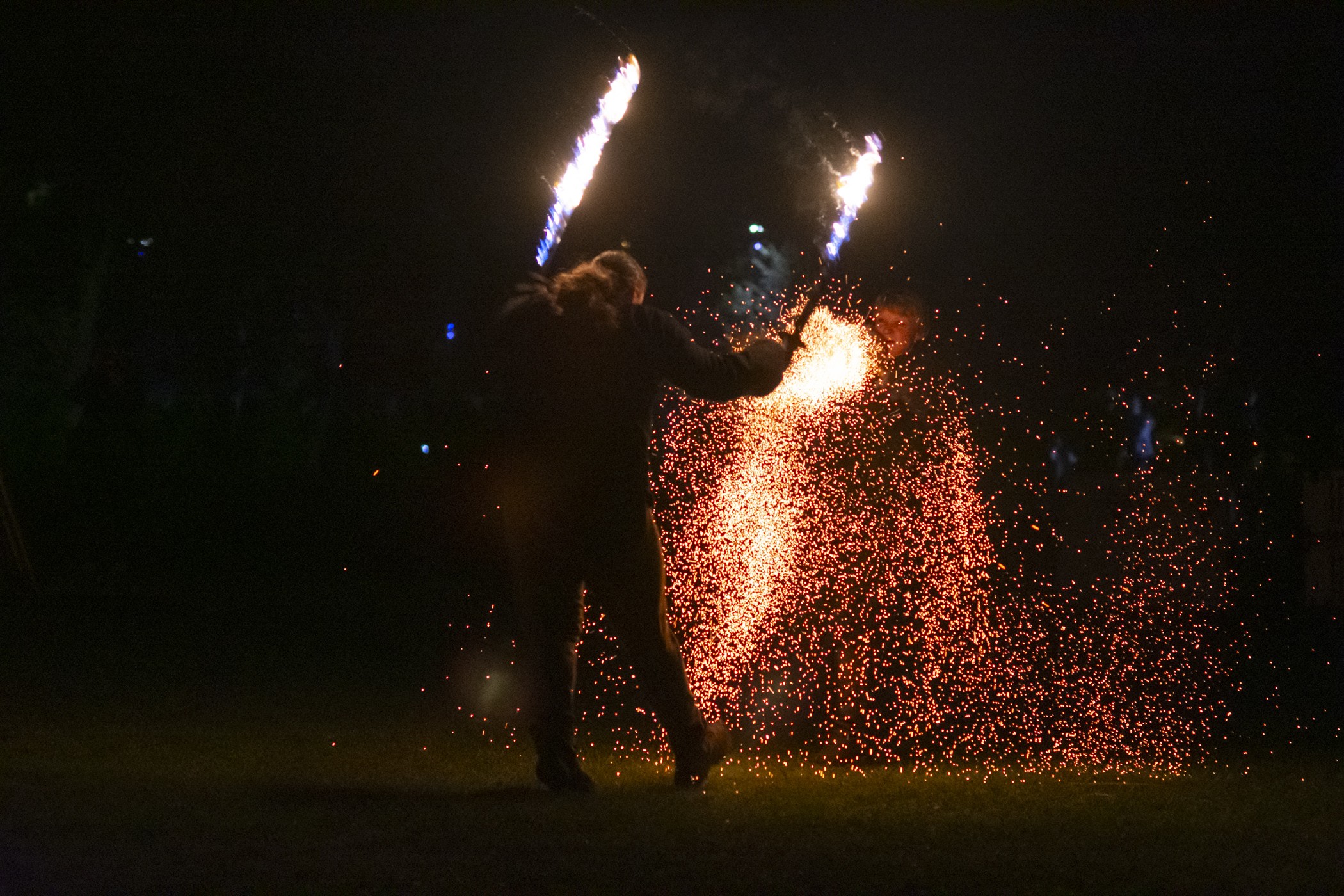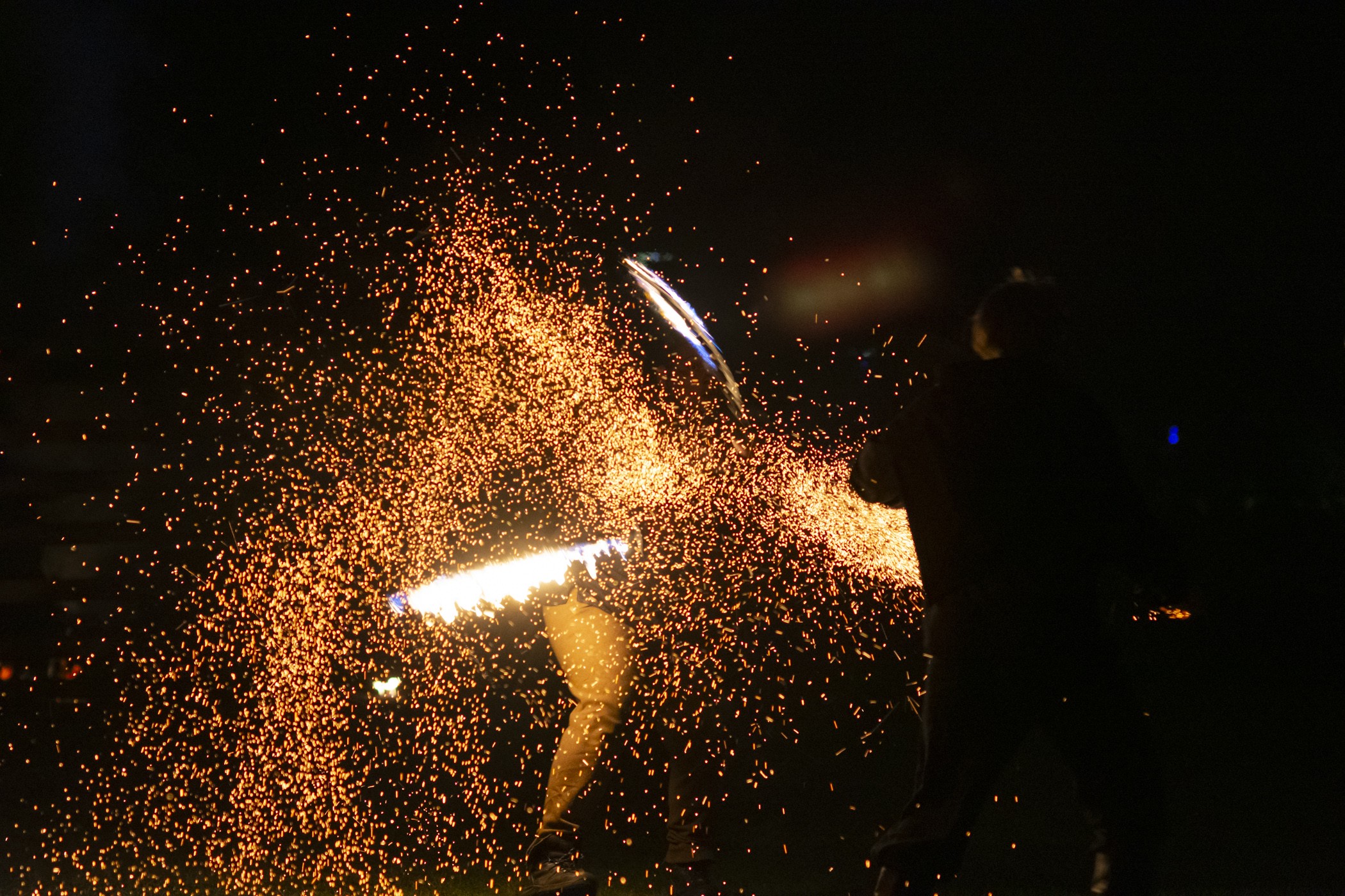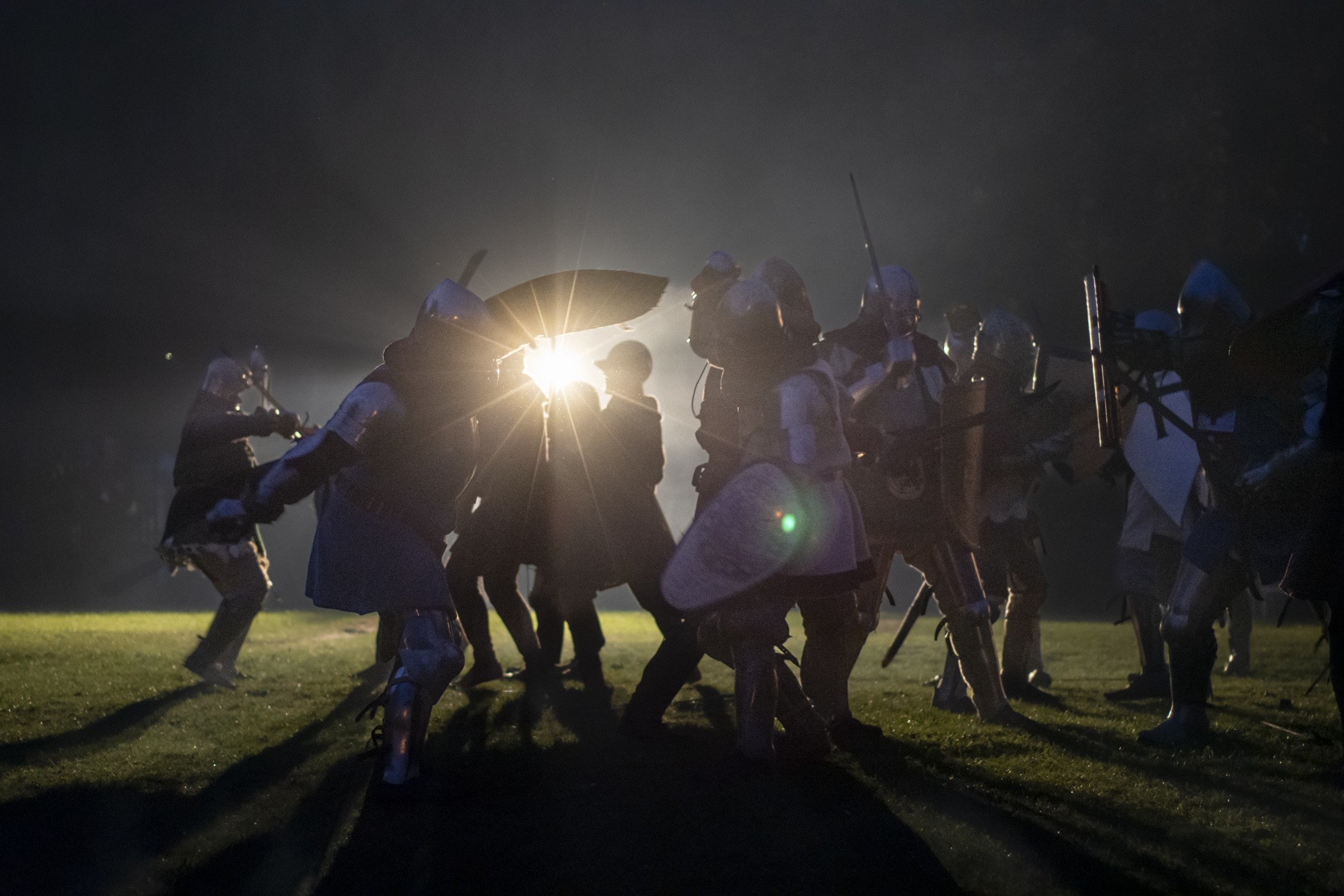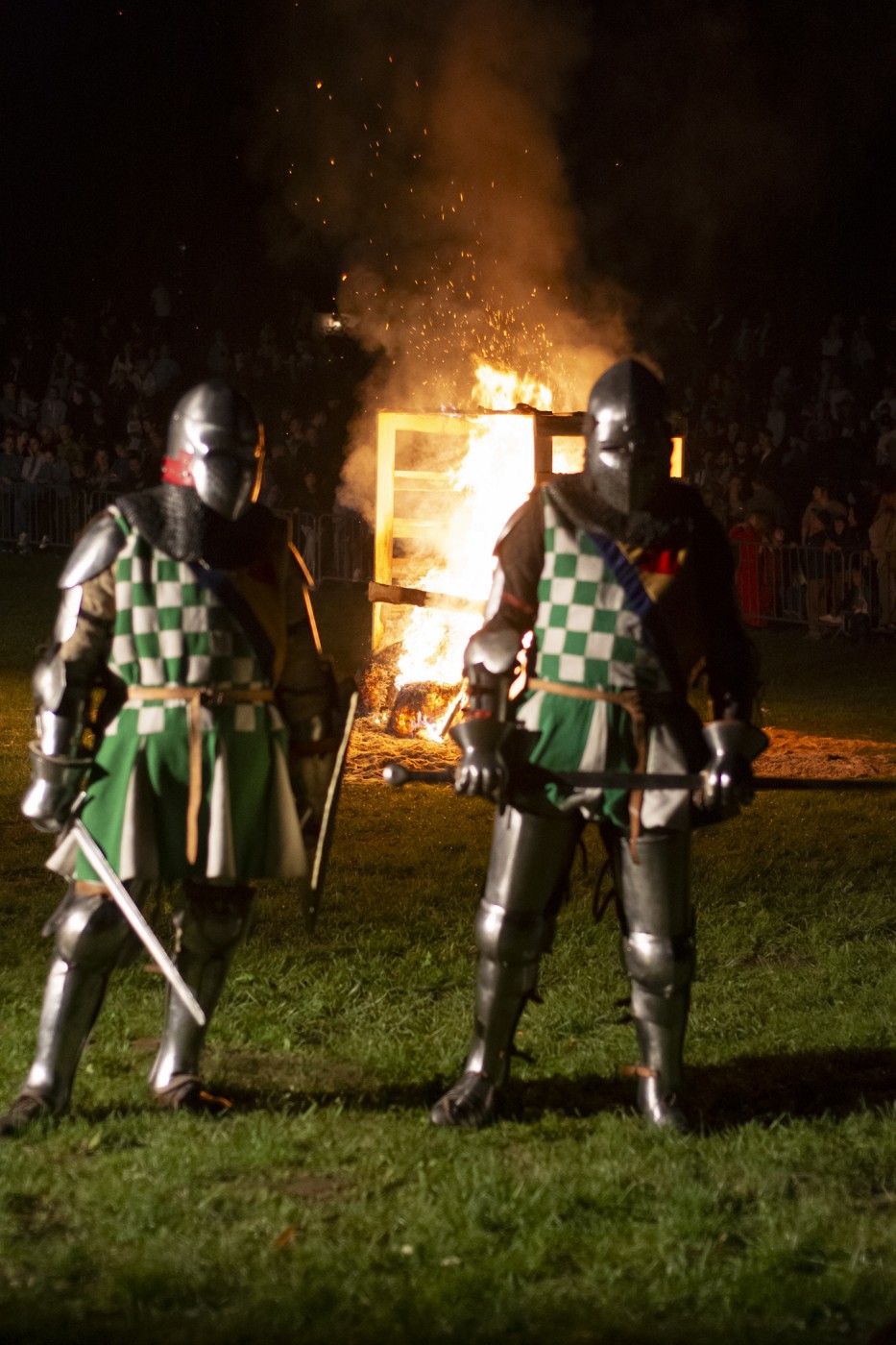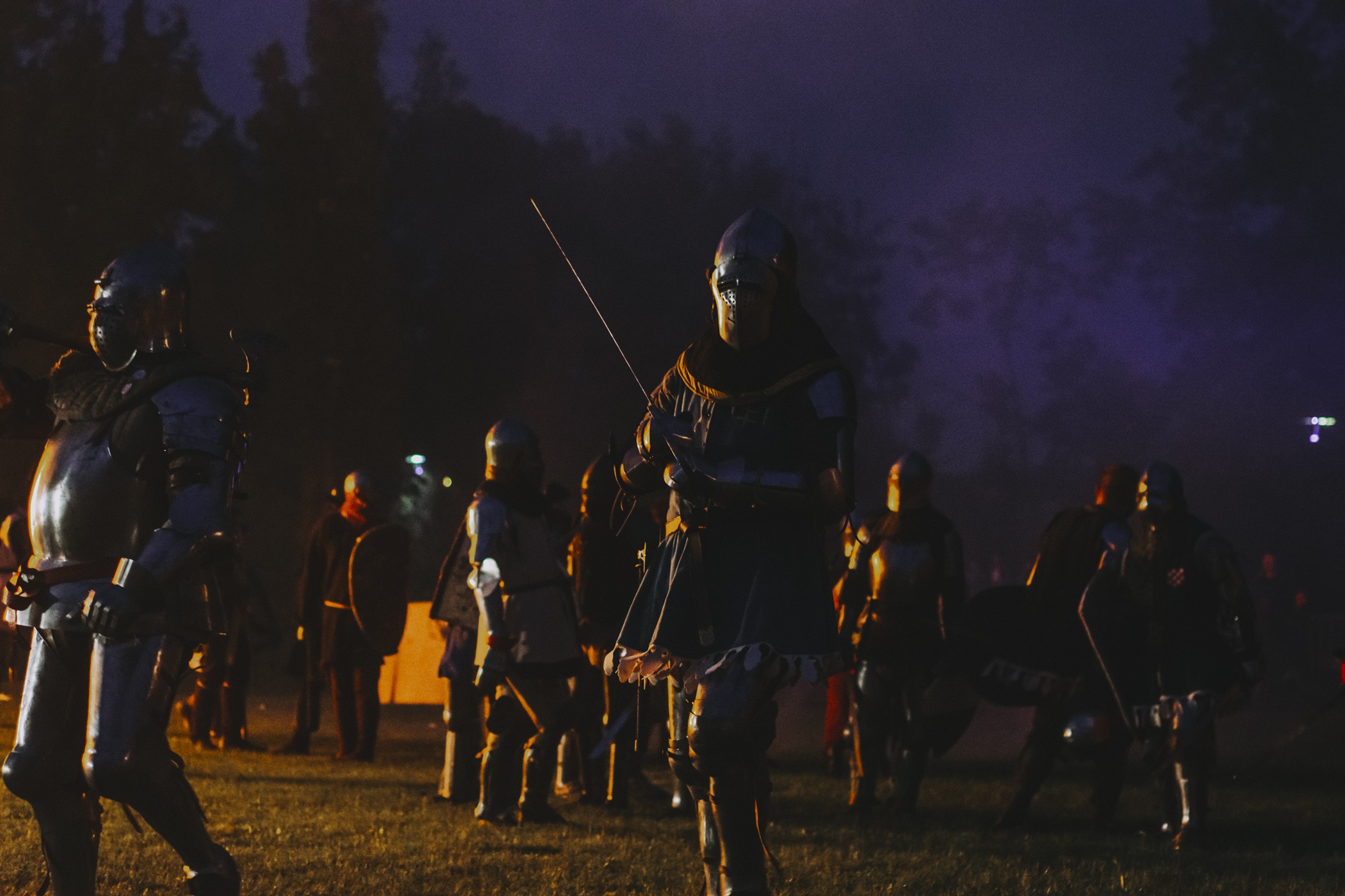 O 20:00 publiczność wstrzymała oddech, gdy rozpoczęła się wielka inscenizacja bitwy pod Chojnicami. Huk, wrzawa i walka na całego – tym razem bez ofiar, za to z ogromnym ładunkiem adrenaliny i emocji. A gdy zapadła noc, nad parkiem rozbłysło fireshow grupy Tempora Militum. Ogień tańczył w rytmie bębnów, a zgromadzeni wiedzieli, że oto zakończyła się prawdziwa uczta dla wojowników i gawiedzi.
