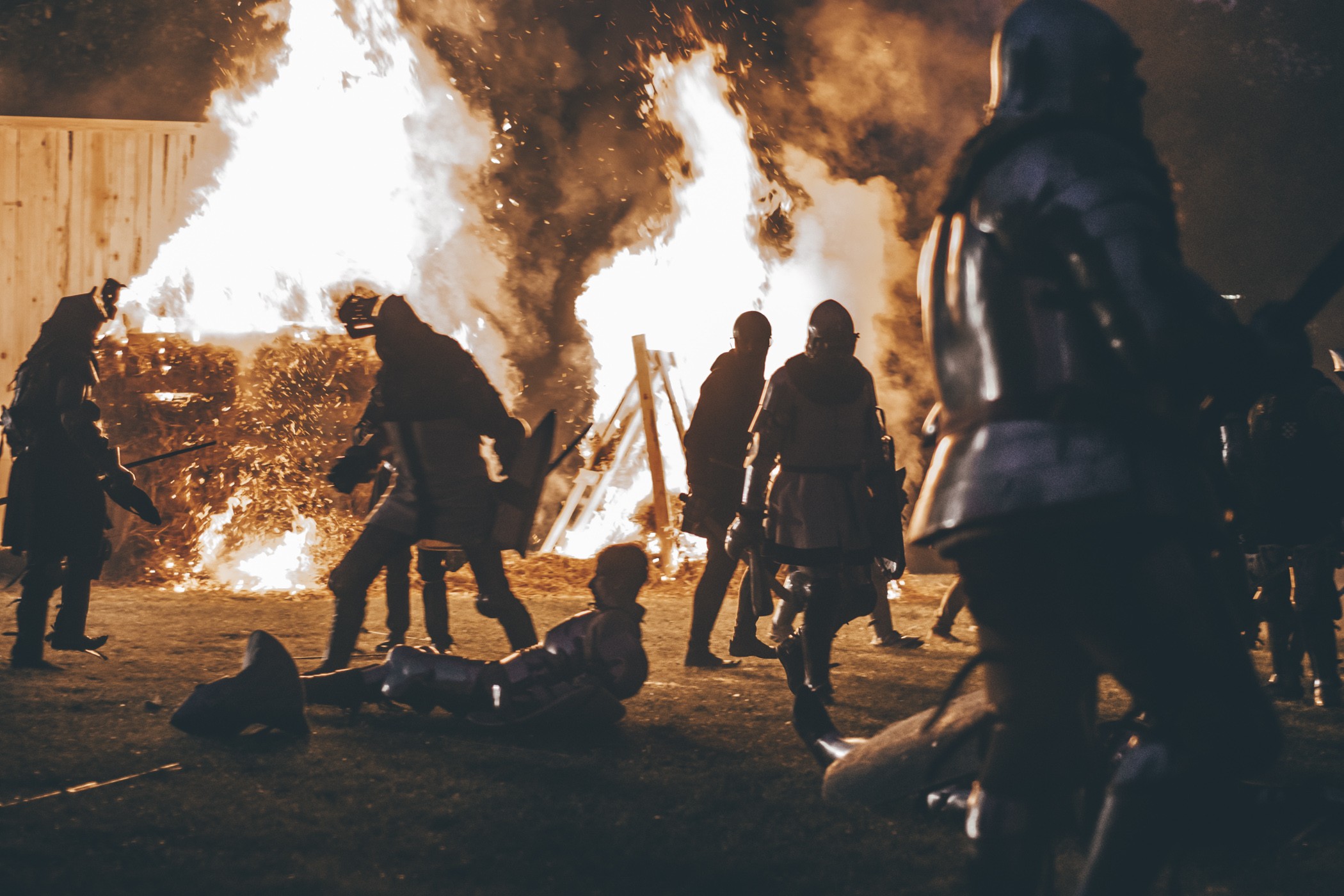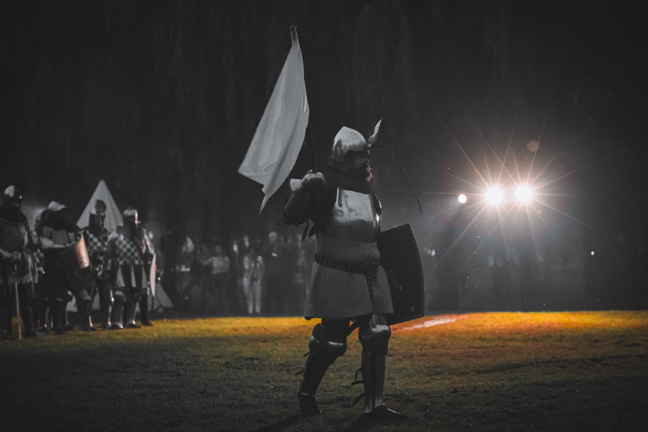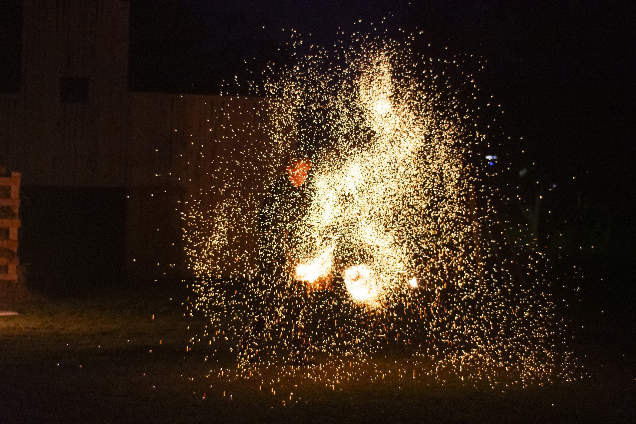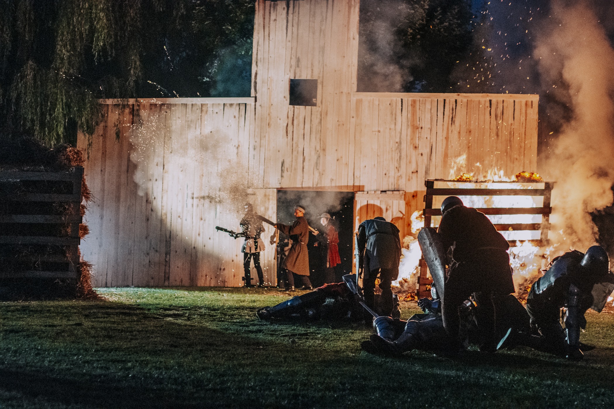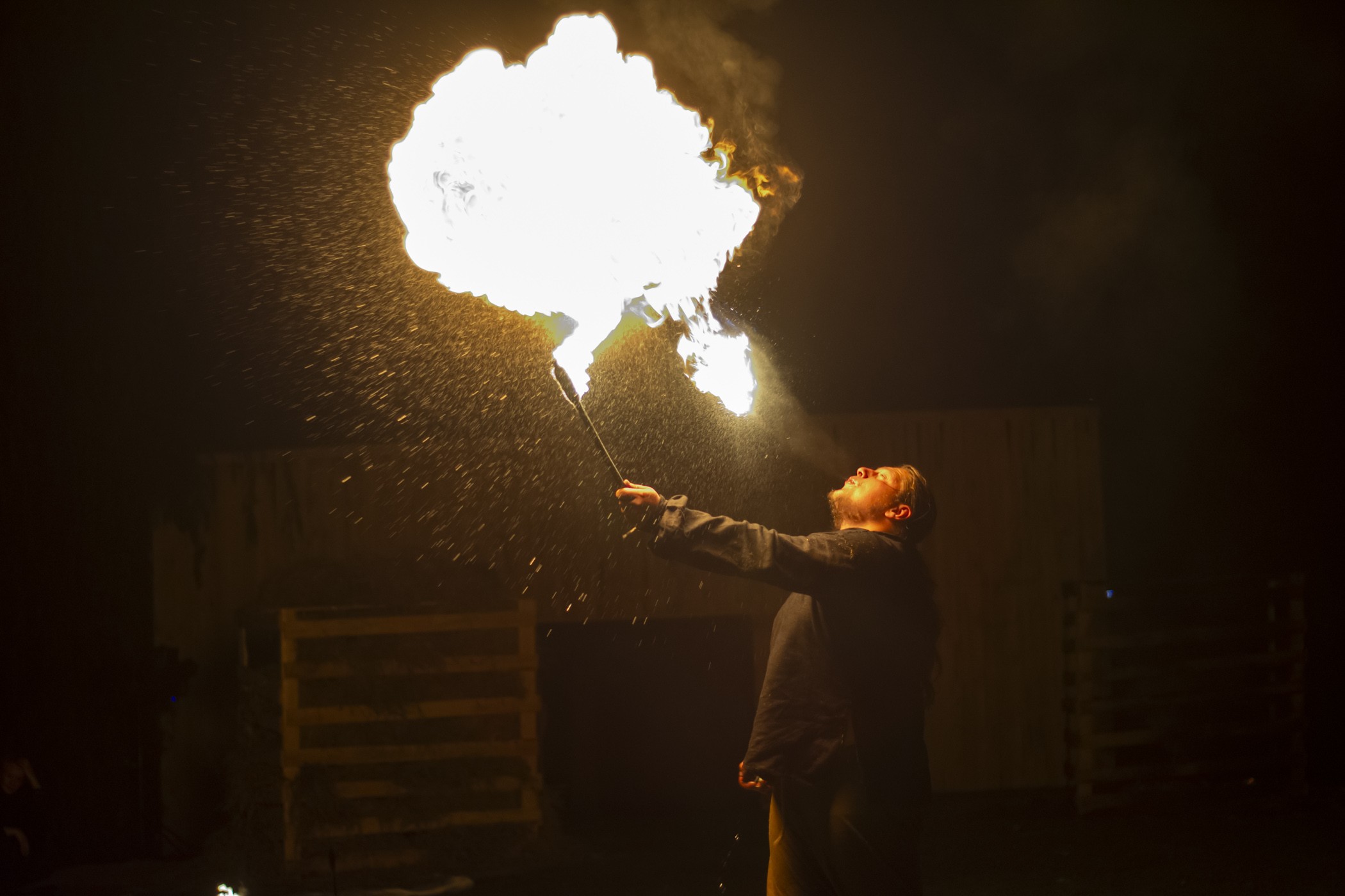 O 20:00 publiczność wstrzymała oddech, gdy rozpoczęła się wielka inscenizacja bitwy pod Chojnicami. Huk, wrzawa i walka na całego – tym razem bez ofiar, za to z ogromnym ładunkiem adrenaliny i emocji. A gdy zapadła noc, nad parkiem rozbłysło fireshow grupy Tempora Militum. Ogień tańczył w rytmie bębnów, a zgromadzeni wiedzieli, że oto zakończyła się prawdziwa uczta dla wojowników i gawiedzi.