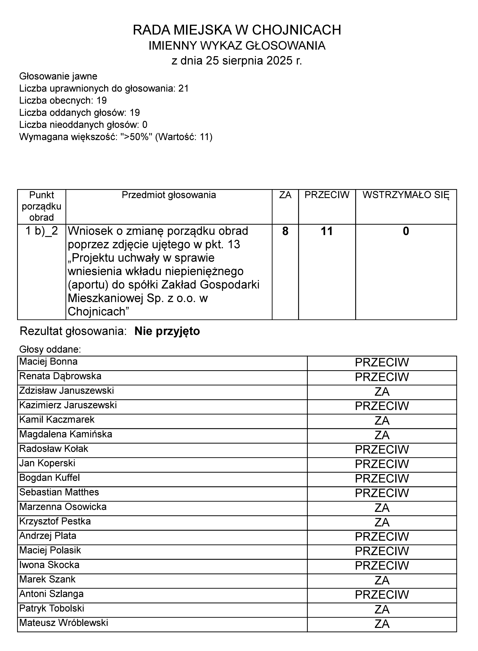 Nie można zapominać, że dziś z samorządowej wspólnoty wykluczonych jest w Chojnicach co najmniej 1/3 mieszkańców - wszyscy Ci, którzy myślą inaczej. W obozie burmistrza obowiązuje natomiast zasada: "bezwarunkowej jednomyślności". Kto się wychyla, jak choćby właśnie radny Marek Szank, ten zostaje natychmiast odsunięty.