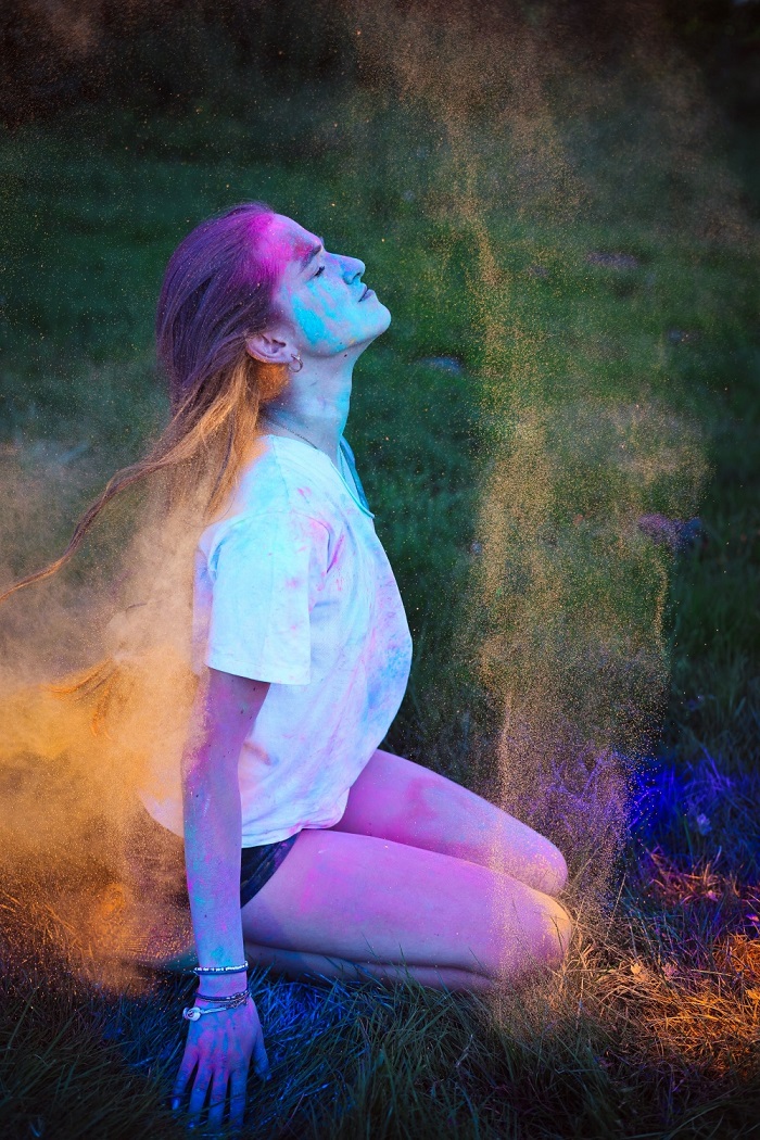 Pomysł, który zainspirował twórców, został w całości wymyślony i zrealizowany przez młodzież. Kolory, obecne w całym projekcie, stały się symbolem ich aktywności i różnorodnych osobowości. Jednym z kluczowych momentów była sesja holi – wydarzenie pełne barw i pozytywnej energii. To właśnie podczas niej powstały wyjątkowe portrety, które stanowią nowe spojrzenie na fotografię – nieoczywiste, symboliczne i osobiste. Każdy uczestnik pokazał w nich tylko to, co sam chciał odsłonić, a reszta pozostała ukryta w obrazie, nadając fotografiom tajemniczości i indywidualnego charakteru.
