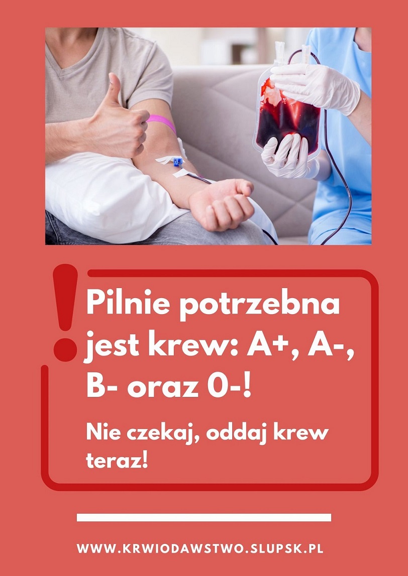 „Nie czekaj, oddaj krew teraz!” – apelują służby medyczne, zachęcając do odwiedzenia punktów krwiodawstwa. Szczegółowe informacje o możliwości oddania krwi dostępne są na stronie: www.krwiodawstwo.slupsk.pl.