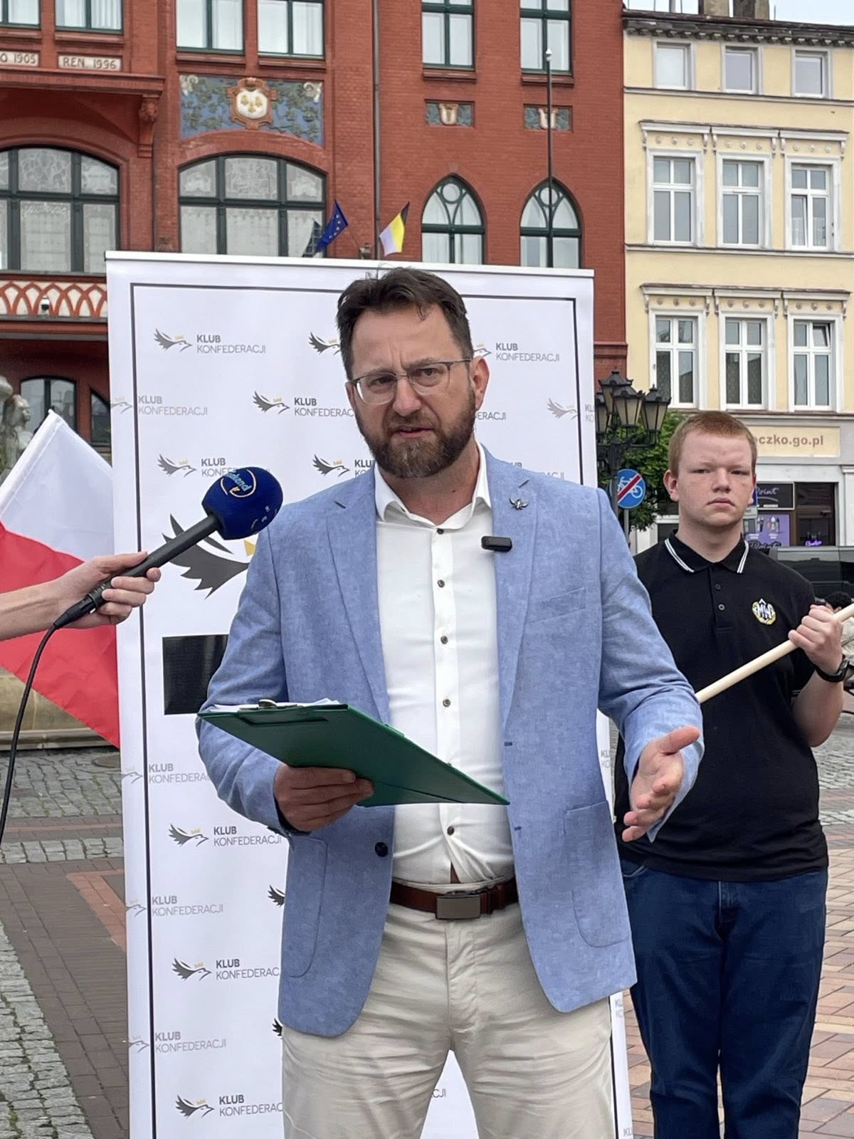 - Konfederacja złożyła poprawkę do projektu ustawy o warunkach powierzenia pracy cudzoziemcom na terytorium RP - mówił Arkadiusz Cyman. - Poprawka została odrzucona przez rządzących jako zbyt kontrowersyjna, a sensownym wydaje się być weryfikowanie, kogo Polska wpuszcza na swoje terytorium. Gdyby taki wymóg został wprowadzony, to można by uniknąć np. sytuacji jaka miała miejsce w lipcu w Lubinie. Doszło tam do pobicia i gwałtu 24-letniej obywatelki Mołdawii przez 33 letniego obywatela tego samego kraju. Okazało się, że drugi z Mołdawian, który brał udział w pobiciu kobiety i dopuścił się zniszczenia mienia, był skazany w Mołdawii na karę 8 lat pozbawienia wolności za zabójstwo. Gdyby poprawka Konfederacji została przyjęta, osoba ta nigdy nie znalazłaby się na terytorium naszego kraju.