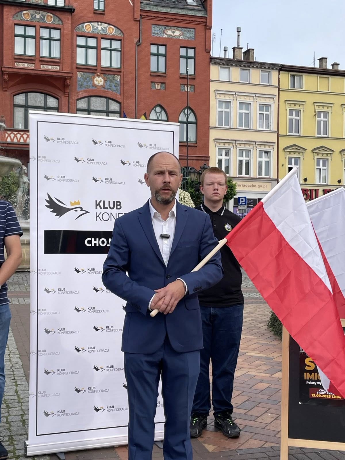 - To było pierwsze nasze wydarzenie poświęcone masowej imigracji - mówi Sławomir Butza, lider Konfederacji w powiecie chojnickim. - Pikietę zorganizował Ruch Narodowy koło powiatu chojnickiego. Pomagali również działacze z powiatu człuchowskiego. Nie zapominamy bowiem o problemach, które zaczynają coraz częściej dotykać obywateli Polski.