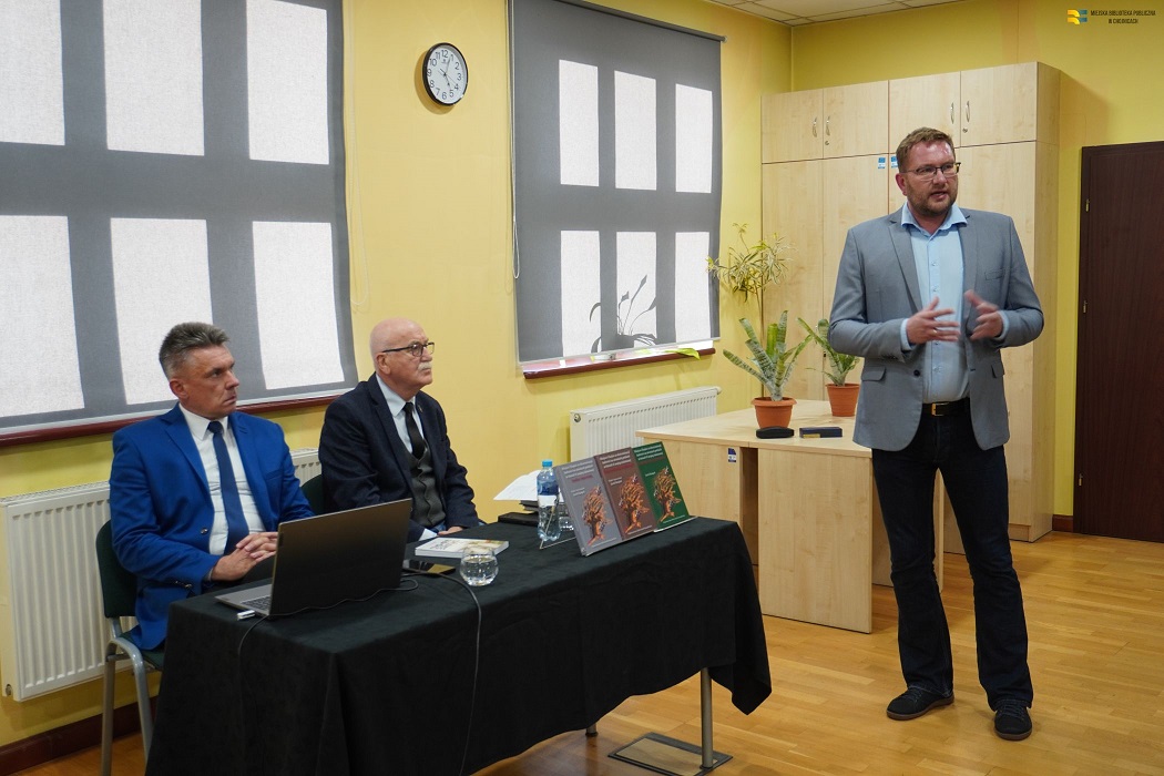 Promocja najnowszych książek prof. Jacka Knopka pod wspólnym tytułem „Miejsce Chojnic w eksterminacji ludności na ziemiach polskich w latach II wojny światowej” odbyła się w środę 17 września 2025 roku w Czytelni MBP. Wstęp do spotkania wygłosił Bogdan Kuffel, regionalista i nauczyciel historii.