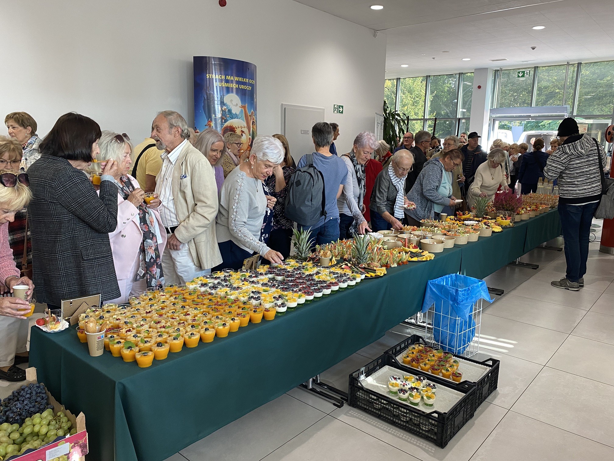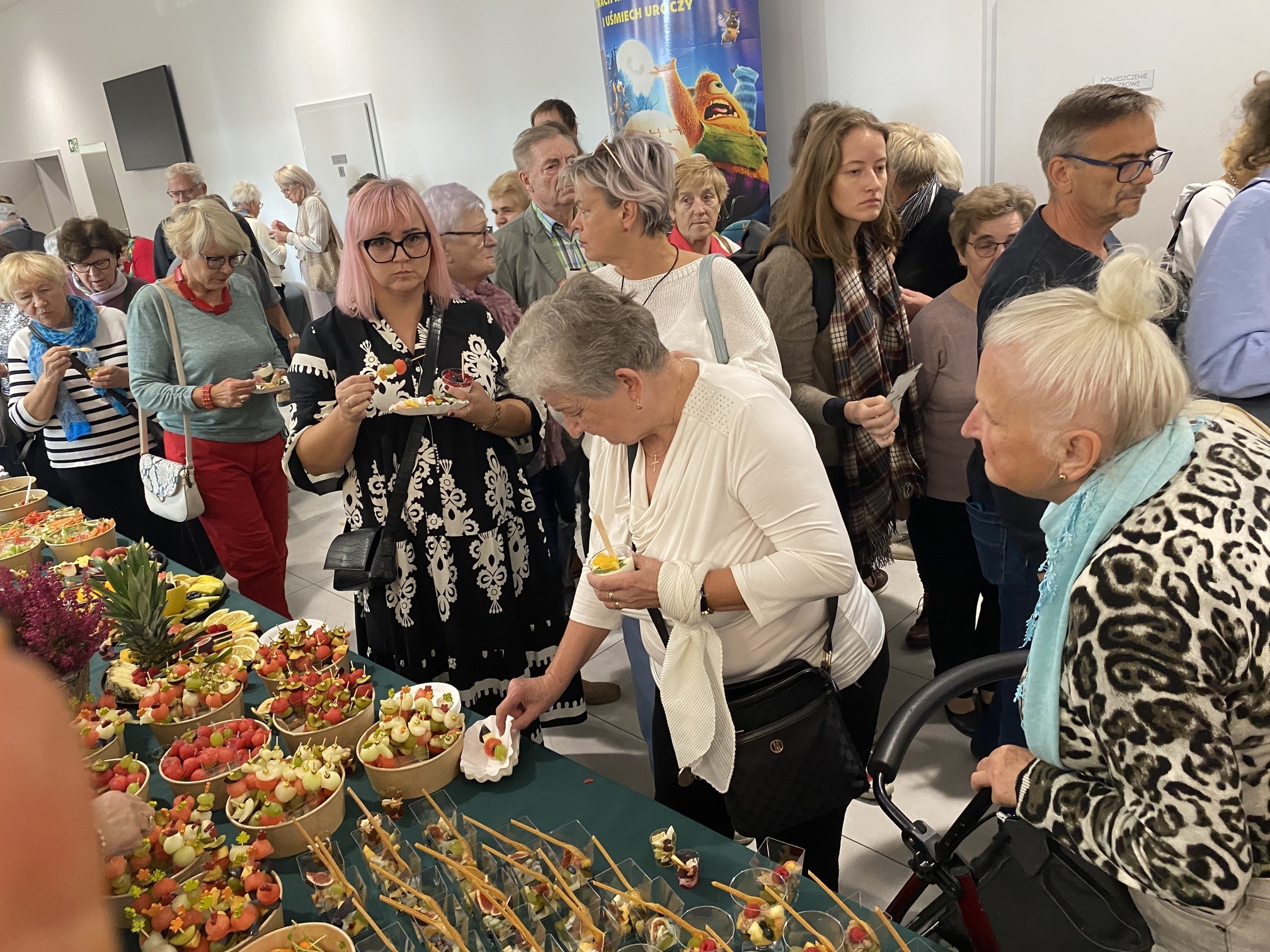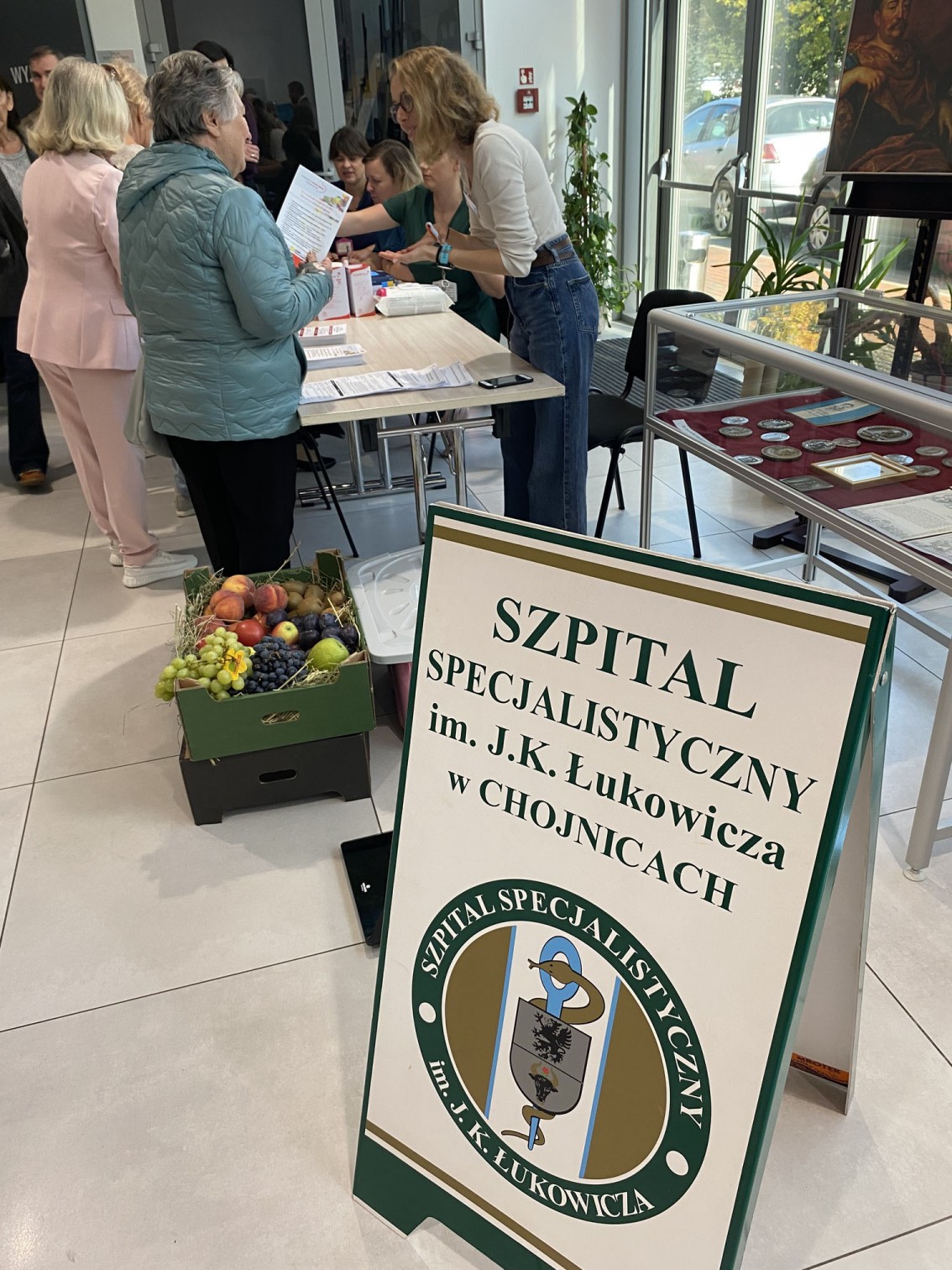 W holu z kolei na wszystkich czekał poczęstunek oparty na zdrowych produktach oraz napoje. Było również stanowisko chojnickiego szpitala, przy którym panie mierzyły chętnym ciśnienie, poziom cukru we krwi i wagę. Jak mówiły po badaniach, u nikogo nie było powodów do niepokoju. U niektórych badanych wprawdzie zdarzały się lekkie podwyższenia cukru czy ciśnienia, ale większość osób nie była na czczo, a u wszystkich badanie poprzedził też wysiłek - jak choćby wejście po schodach. Niewielkie podwyższenia w wynikach pomiarów były nie budziły więc niepokoju.