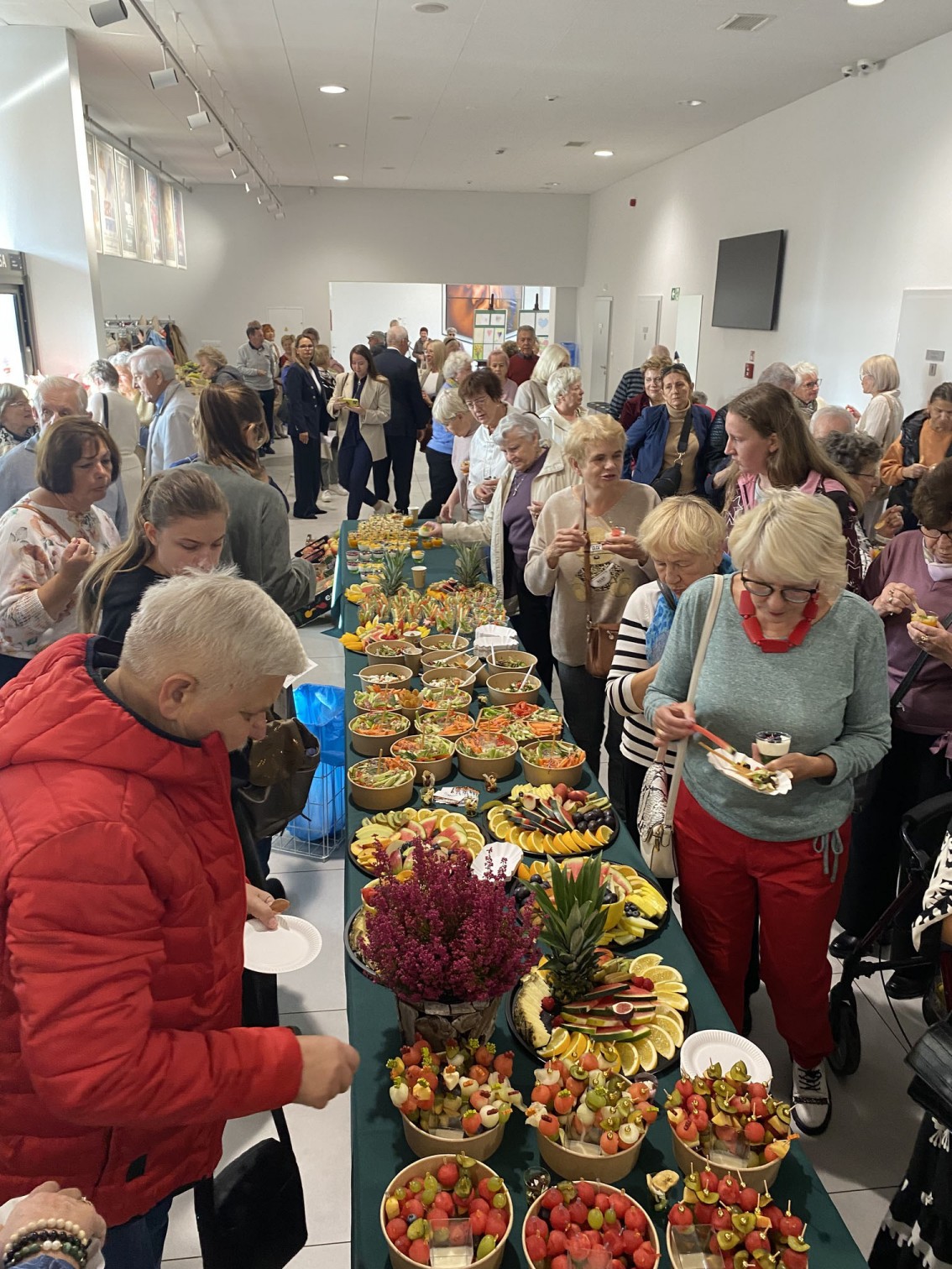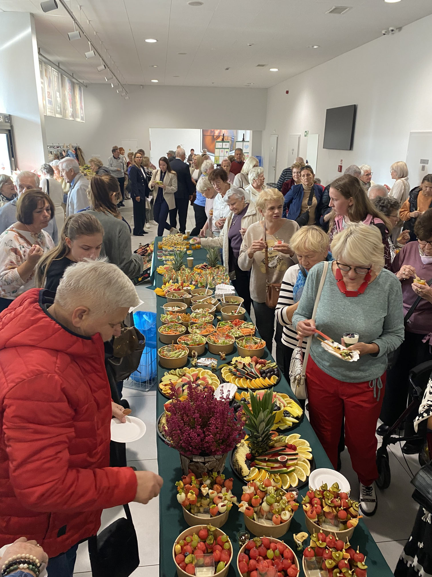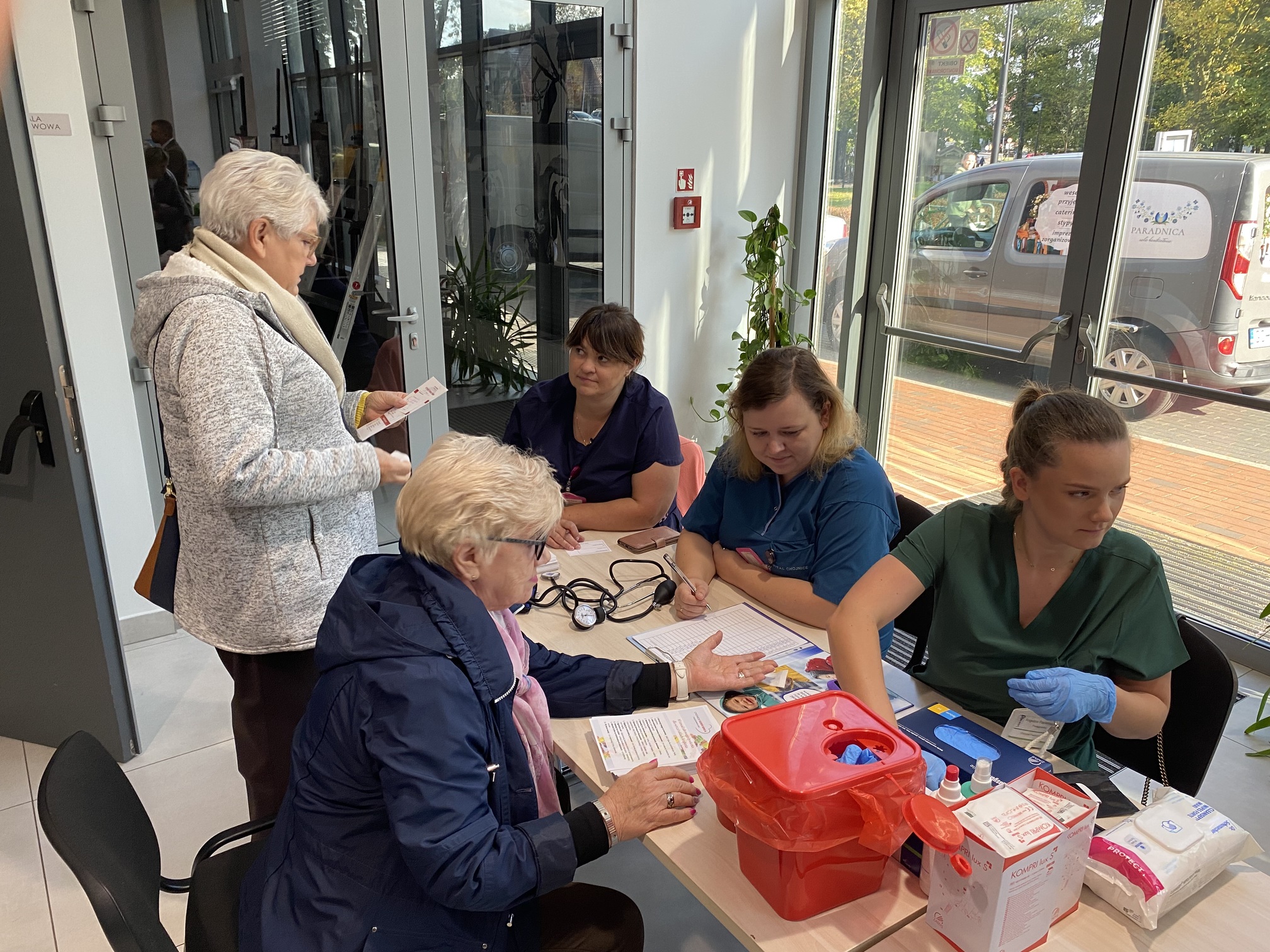 W holu z kolei na wszystkich czekał poczęstunek oparty na zdrowych produktach oraz napoje. Było również stanowisko chojnickiego szpitala, przy którym panie mierzyły chętnym ciśnienie, poziom cukru we krwi i wagę. Jak mówiły po badaniach, u nikogo nie było powodów do niepokoju. U niektórych badanych wprawdzie zdarzały się lekkie podwyższenia cukru czy ciśnienia, ale większość osób nie była na czczo, a u wszystkich badanie poprzedził też wysiłek - jak choćby wejście po schodach. Niewielkie podwyższenia w wynikach pomiarów były nie budziły więc niepokoju.
