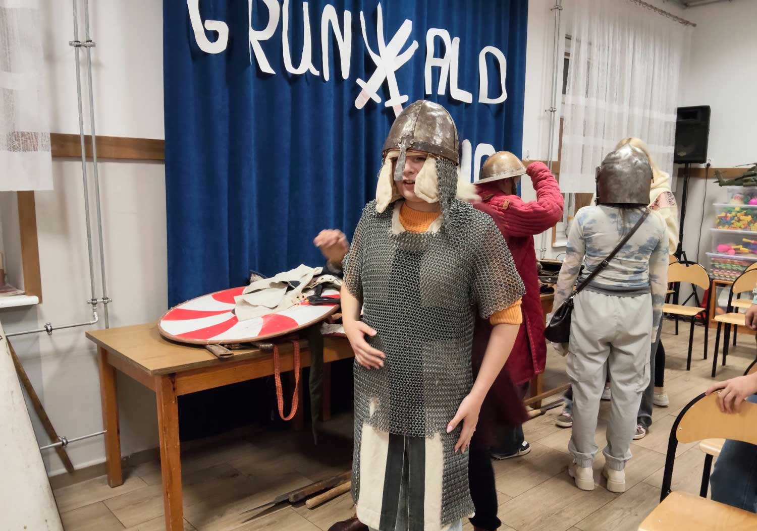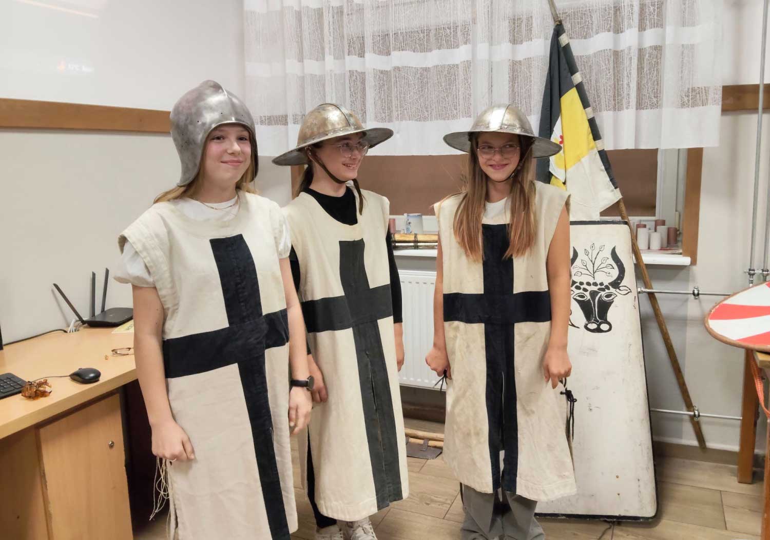 Po projekcji odbyła się prelekcja Piotra Dyląga – nauczyciela historii, rekonstruktora, członka Bractwa Herbu Tur w Chojnicach, który w ciekawy i przystępny sposób opowiedział o uzbrojeniu rycerzy i piechoty, średniowiecznych zwyczajach, strojach i codziennym życiu ludzi tamtej epoki.