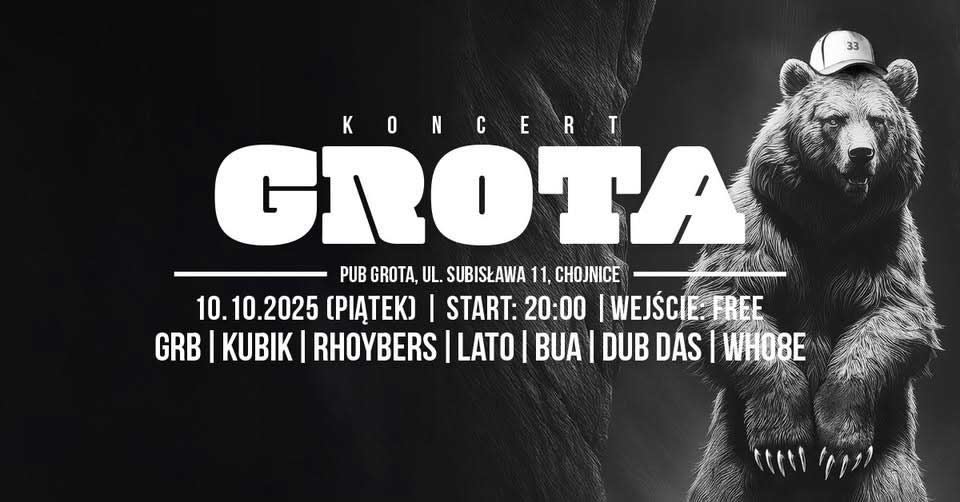 Wstęp jest całkowicie darmowy, ale pamiętajcie - liczba miejsc jest ograniczona. Jeśli więc marzy Wam się piątkowy wieczór w klimacie dobrych dźwięków i pozytywnej energii, Pub Grota to miejsce, w którym po prostu trzeba być.