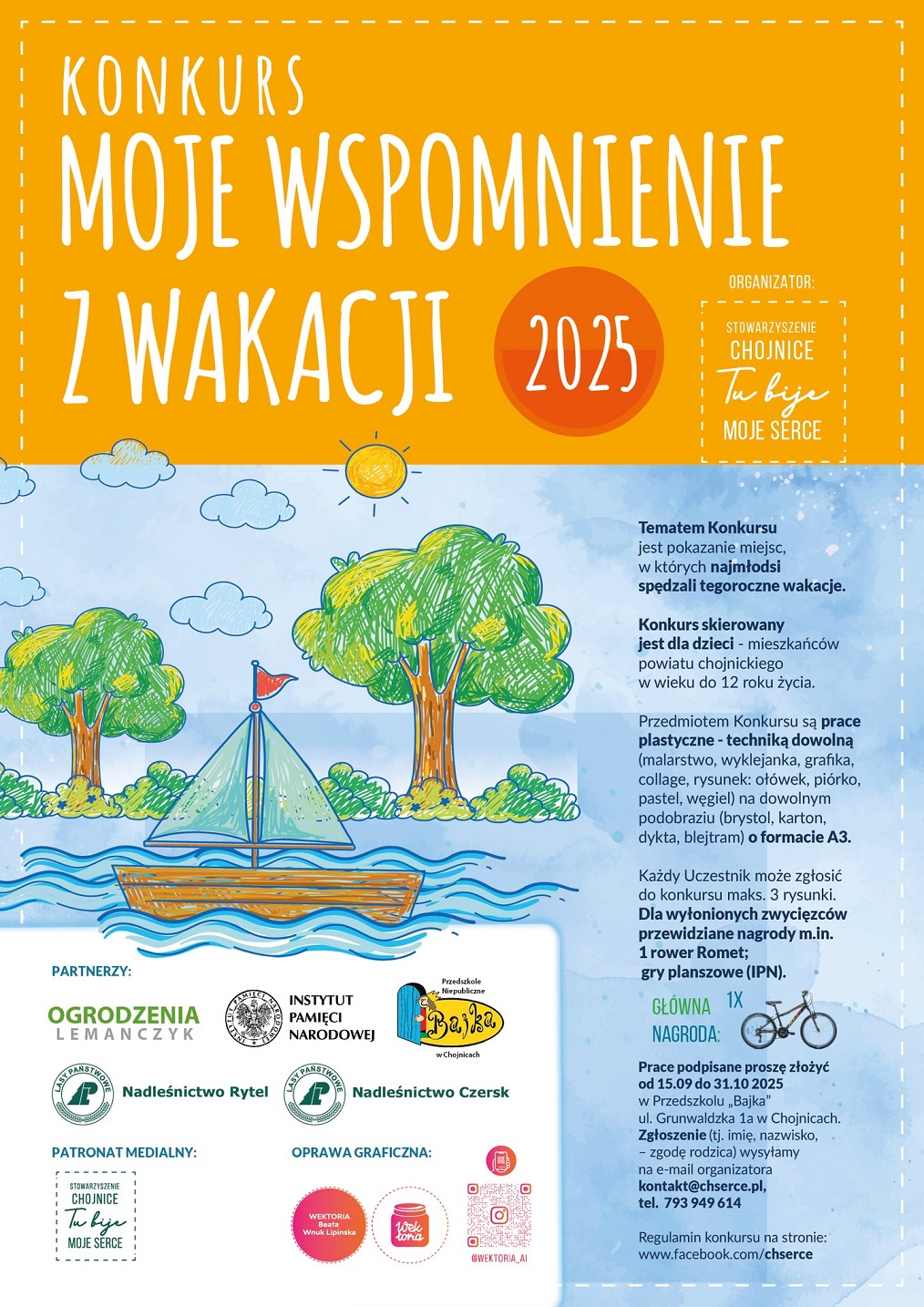 Do udziału w konkursie zapraszamy dzieci do 12 roku życia. Prace można składać od 15 września do 31 października. Głowna nagroda rower ROMET.