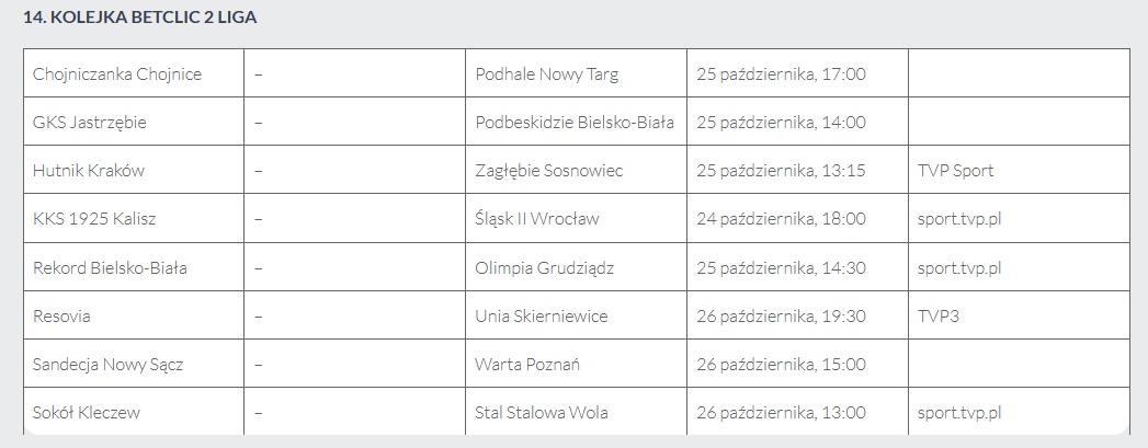 Ustalono terminy meczów 14. kolejki Betclic 2 Ligi oraz 1/16 finału STS Pucharu Polski.