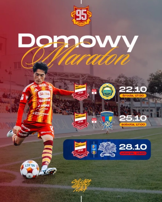 Wcześniej, bo w środę 22 października zagramy zaległy mecz 12. kolejki z Hutnikiem Kraków o 17:30. Wszystkie wymienione spotkania odbędą się na Stadionie Miejskim Chojniczanka 1930. Informacje odnośnie planu sprzedaży wejściówek będą podawane w najbliższym czasie.