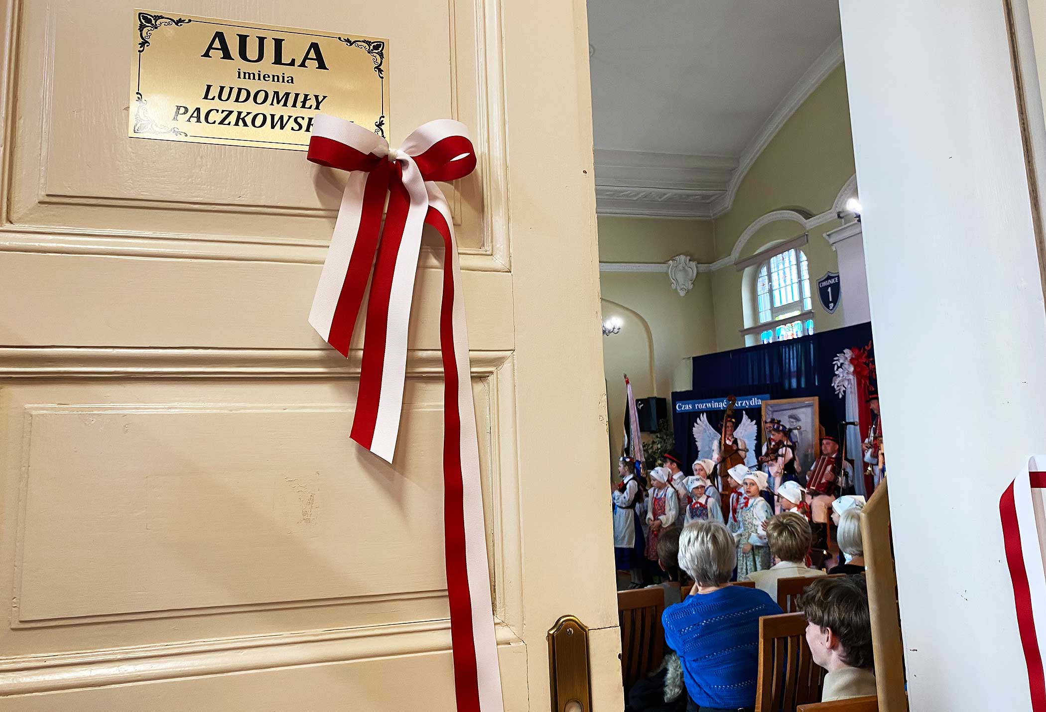 W Szkole Podstawowej nr 1 im. Juliana Rydzkowskiego w Chojnicach w czwartek (16.10) zainaugurowano jubileusz 165-lecia szkoły. Aula szkolna zyskała imię Ludomiły Paczkowskiej, wieloletniej dyrektor tej szkoły. Na uroczystość obecny był m.in. Janusz Paczkowski - mąż zmarłej w ubiegłym roku społeczniczki, działaczki Towarzystwa Przyjaciół Dzieci, "Chojniczanki stulecia". To on wraz z burmistrzem symbolicznie przecięli wstęgę przy wejściu na aulę.