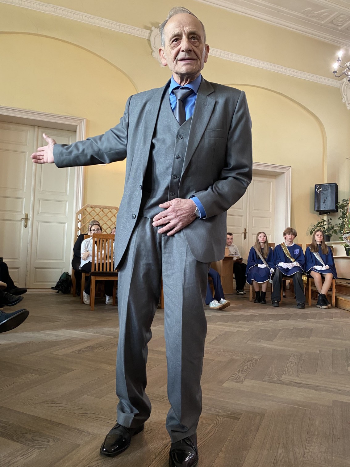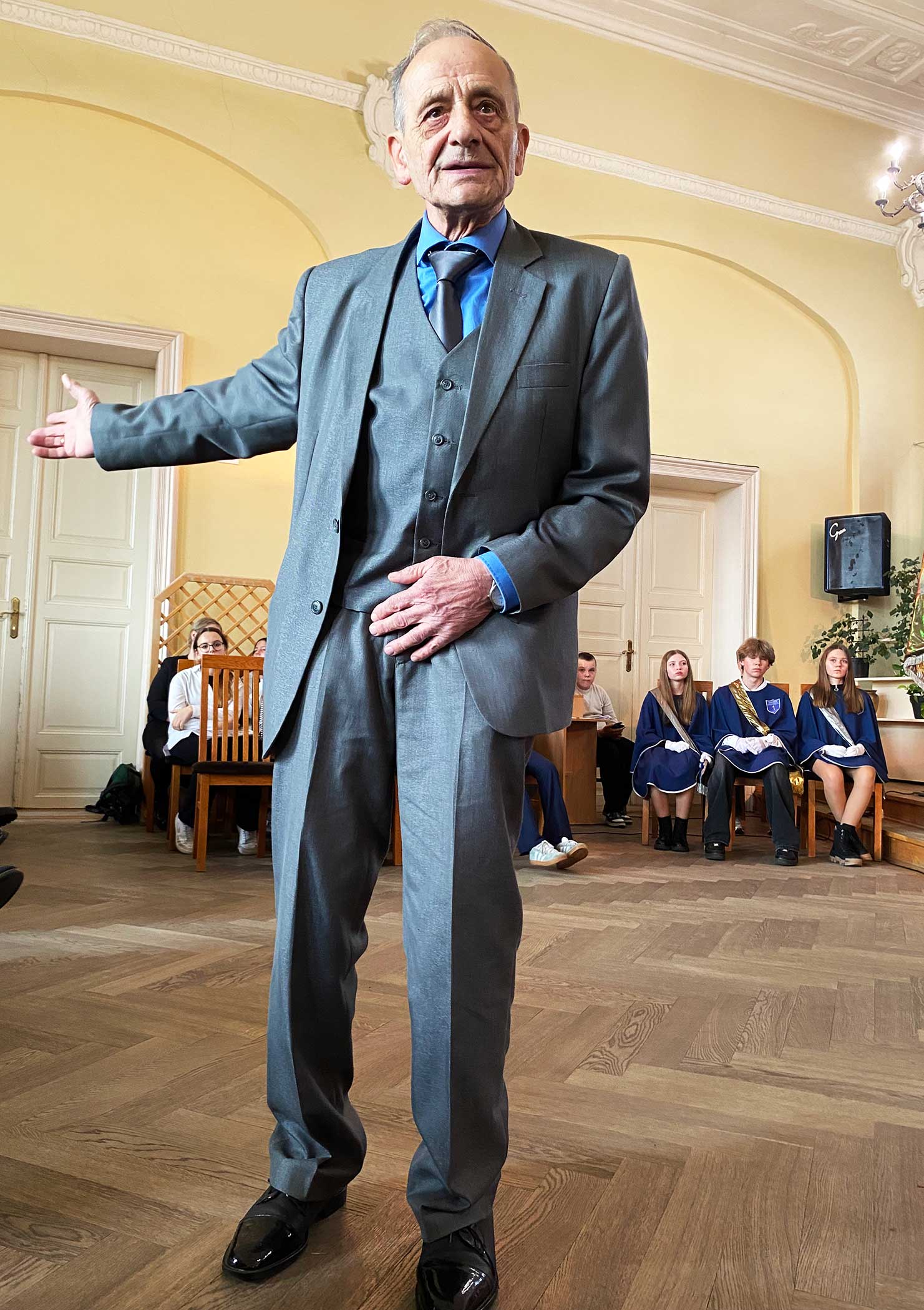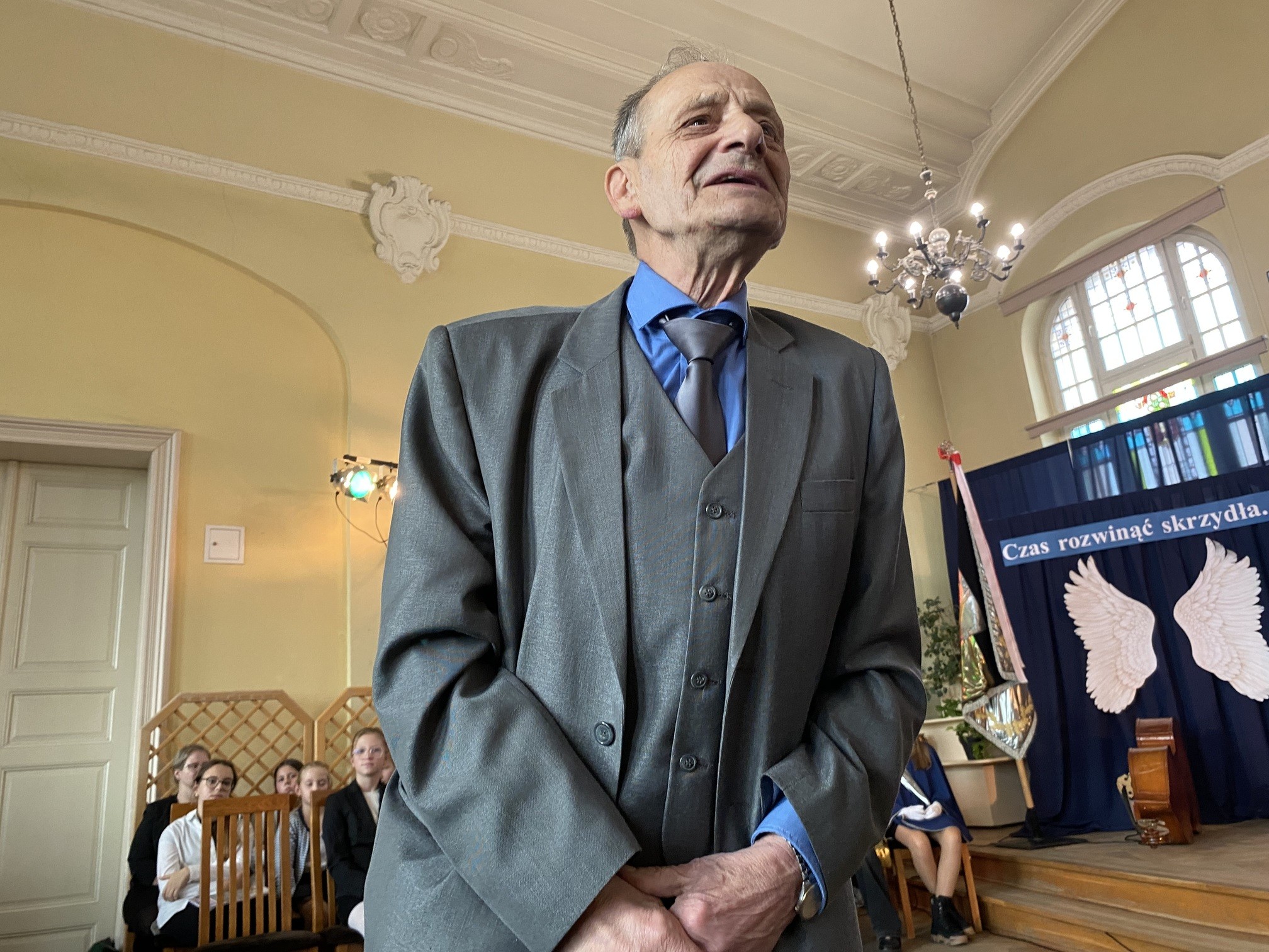 Swoją historię związaną z chojnicką "Jedynką" opowiedział jeden z byłych dyrektorów szkoły, obecny na uroczystości Józef Pokrzywnicki. Zdradził m.in. to, że właśnie w szkole poznał swoją żonę.
