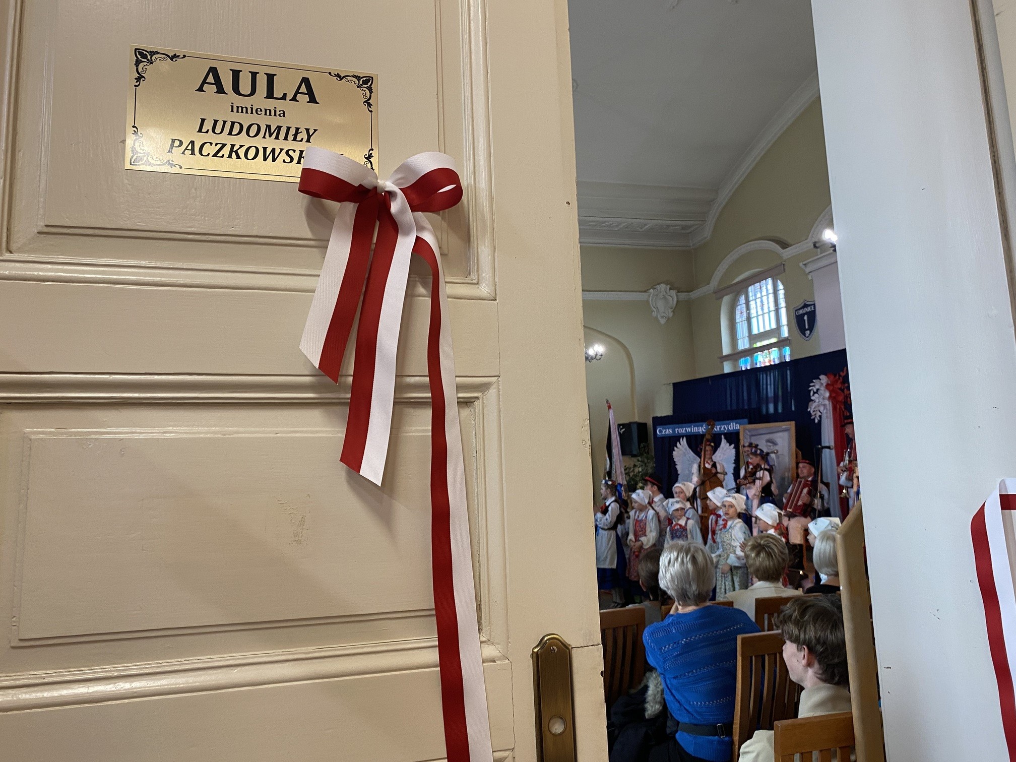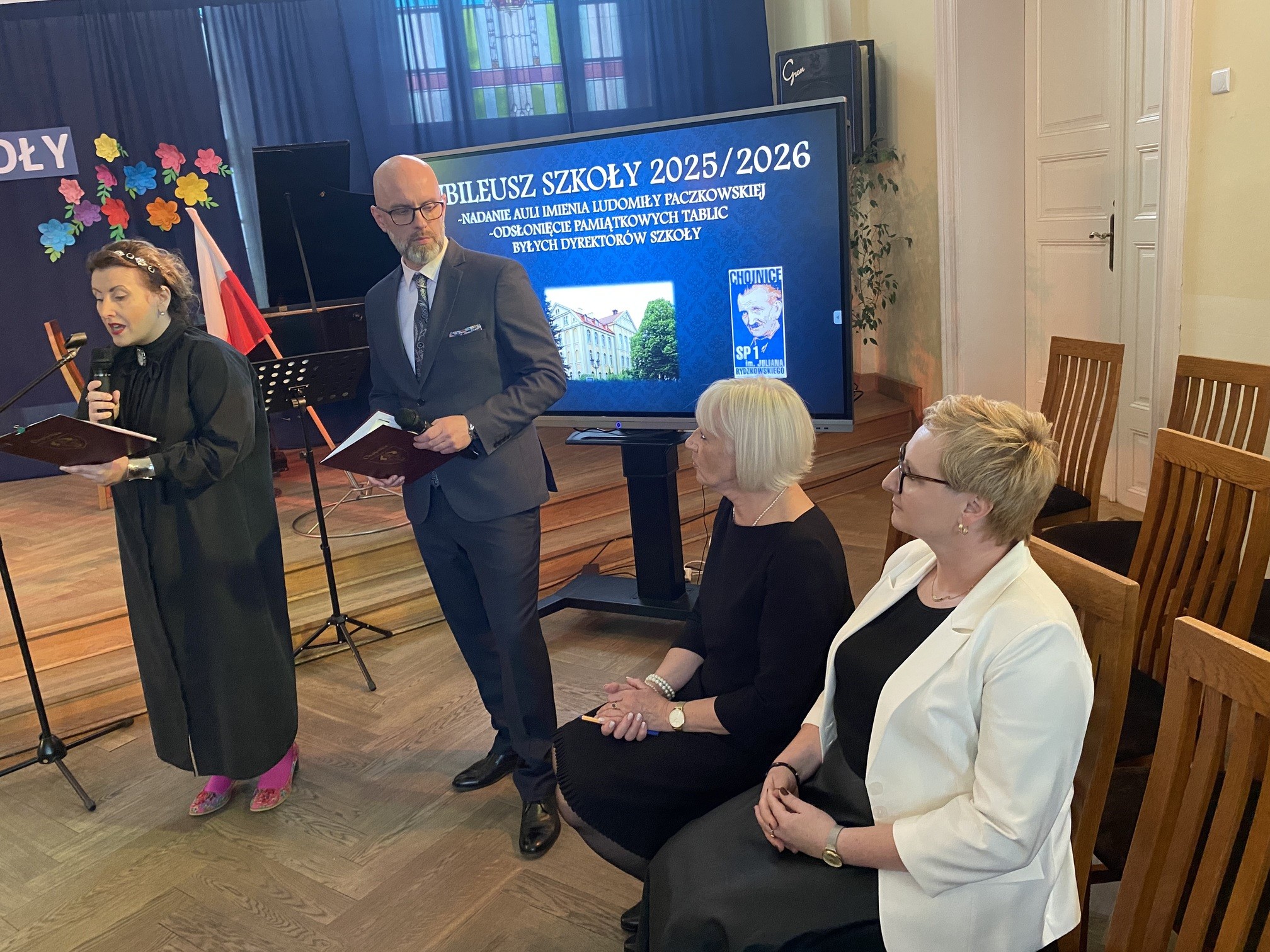 W Szkole Podstawowej nr 1 im. Juliana Rydzkowskiego w Chojnicach w czwartek (16.10) zainaugurowano jubileusz 165-lecia szkoły. Aula szkolna zyskała imię Ludomiły Paczkowskiej, wieloletniej dyrektor tej szkoły. Na uroczystość obecny był m.in. Janusz Paczkowski - mąż zmarłej w ubiegłym roku społeczniczki, działaczki Towarzystwa Przyjaciół Dzieci, "Chojniczanki stulecia". To on wraz z burmistrzem symbolicznie przecięli wstęgę przy wejściu na aulę.