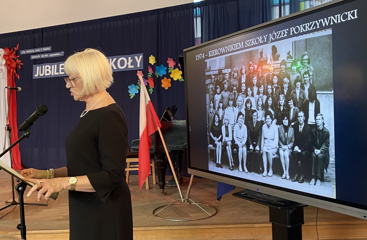 Dyrektor Modrzejewska przedstawiła historię szkoły, opowiedziała o byłych kierownikach i dyrektorach tej placówki. Dziękowała wszystkim gościom za przybycie. A ci zebrali się licznie. Obchody jubileuszu były okazją do spotkań obecnej kadry szkoły i jej uczniów, z dawnymi nauczycielami i absolwentami.