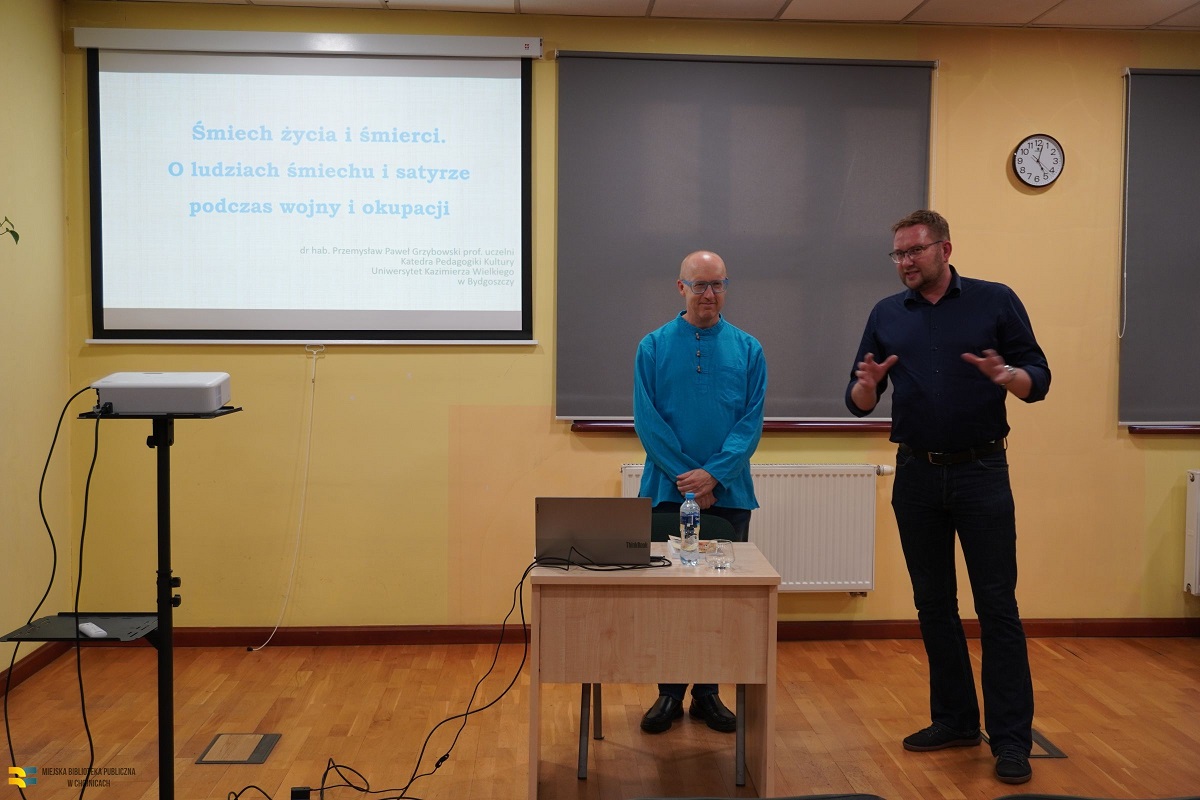 W Miejskiej Bibliotece Publicznej w Chojnicach gościł prof. Przemysław Grzybowski, wykładowca w Katedrze Pedagogiki Kultury Uniwersytetu Kazimierza Wielkiego w Bydgoszczy. Wygłosił dwie prelekcje zatytułowane „Śmiech życia i śmierci. O ludziach śmiechu i satyrze podczas wojny i okupacji”.