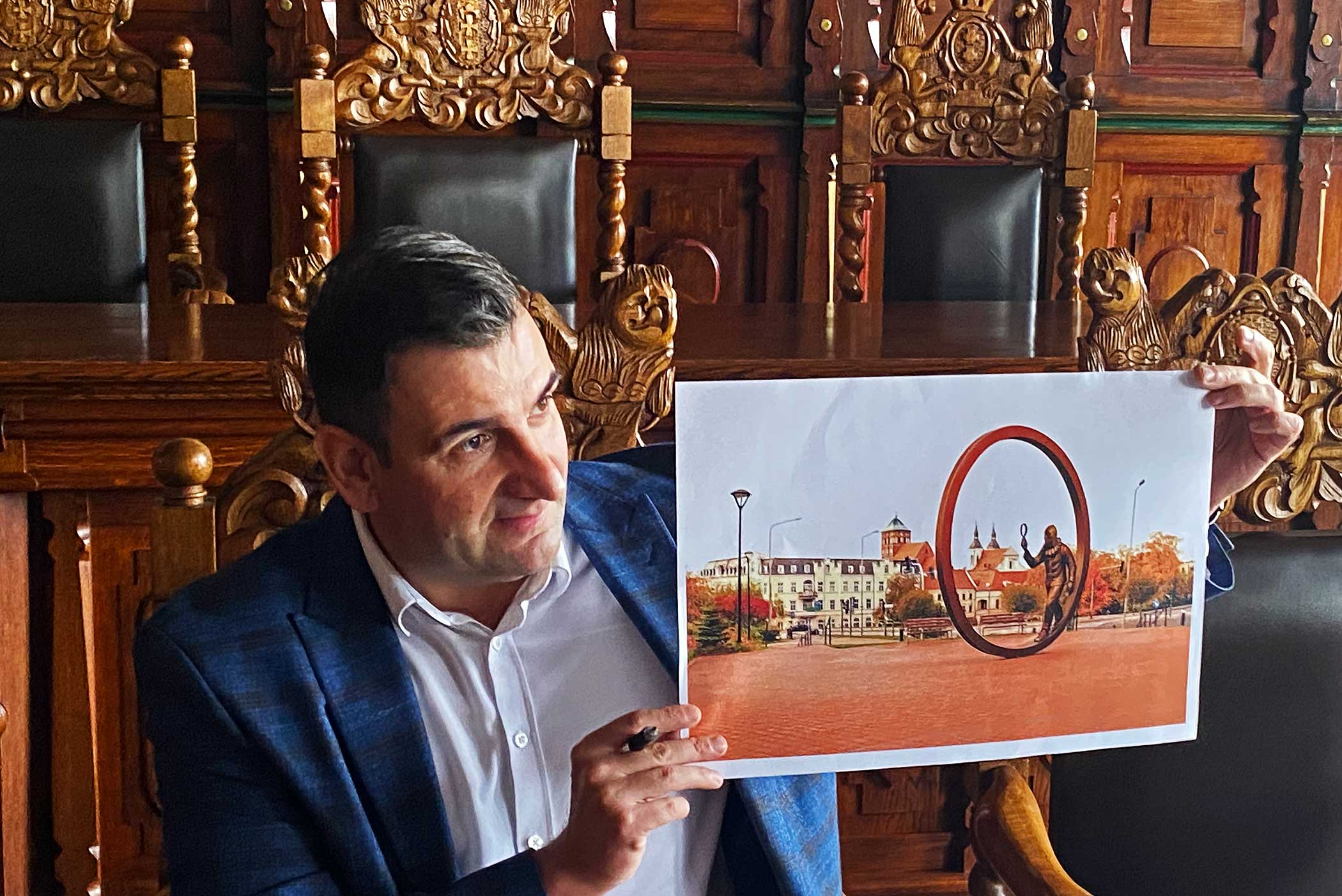 - Spotkałem się z Jarkiem Urbańskim, który dawno już nic dla Chojnic nie stworzył - informował Adam Kopczyński. - Jego tur, który jest przy Bramie Człuchowskiej jest hitem, jest ponadczasowy, każdy przy nim robi sobie zdjęcie i z zaciekawieniem patrzy, z czego jest wykonany. Jarek Urbański przygotował koncepcję, która nawiązywałaby do ChCK, do postaci związanej z kulturą, teatrem, ale też pozwalała na sfotografowanie się na tle niwelety Starego Miasta. To jest koncepcja artysty, jeszcze niedopracowana, ale dzisiaj ją upublicznimy w mediach społecznościowych, aby zasięgnąć opinii mieszkańców. W toku rozmów ustaliśmy z Jarkiem, że w ten okrąg powinien się wkomponować napis Chojnice, by było wiadomo, że mamy do czynienia z miejscem na terenie naszego miasta. Aby każdy fotografujący się na tle naszej niewylety też wiedział, że to jest ramka, która dotyczy Chojnic.