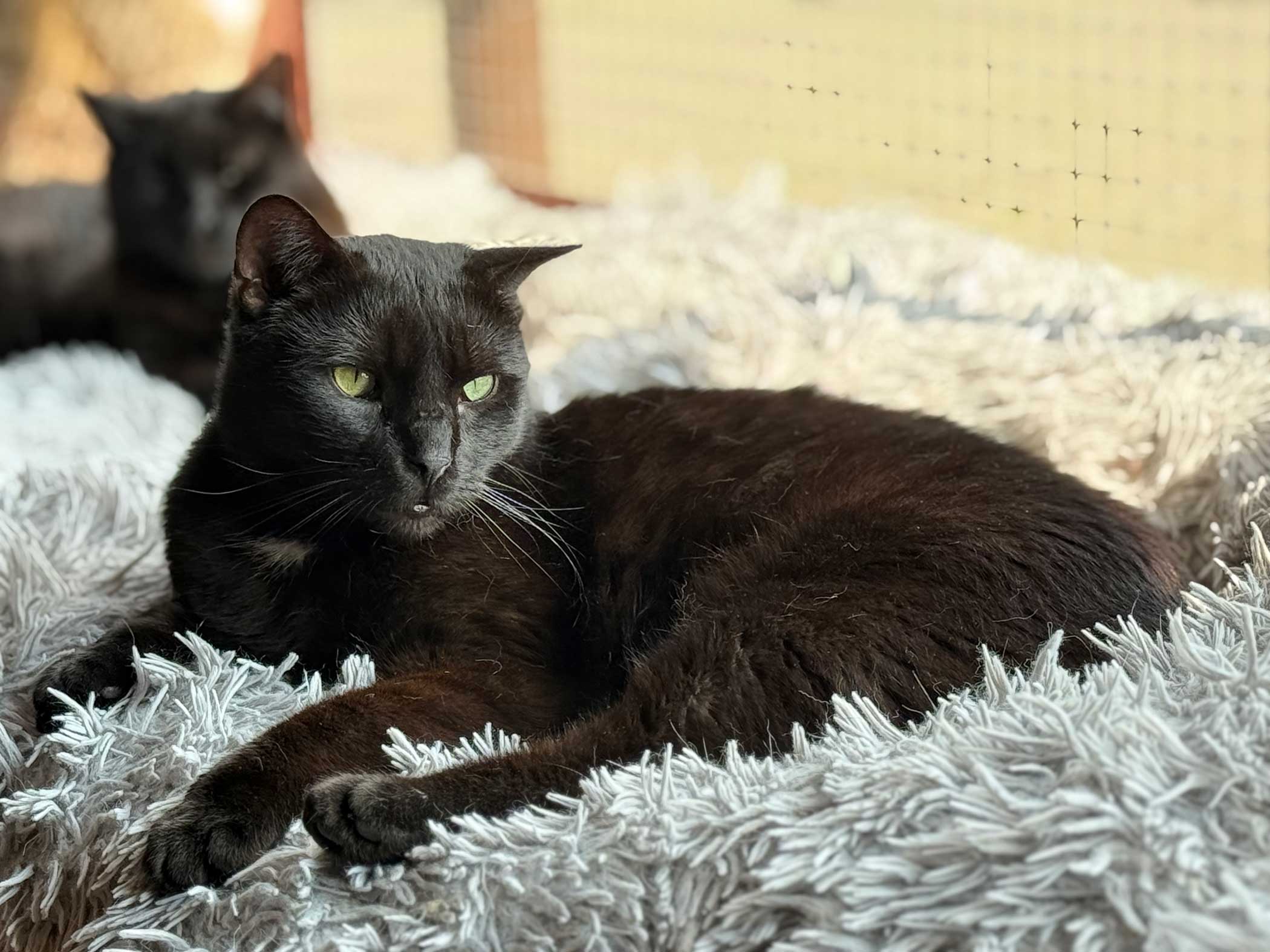 Ona spędziła dziewięć długich lat w schronisku. Nie dlatego, że coś z nią nie tak – po prostu świat czasem bywa ślepy na delikatne dusze. Muszka to dama z doświadczeniem. Nie wdzięczy się do ludzi, nie robi słodkich „miau” dla efektu i nie wymaga fanfar przy każdym posiłku. Raczej obserwuje świat z dystansu, z miną mówiącą: „Nie przeszkadzaj, człowieku, kontempluję egzystencję.”