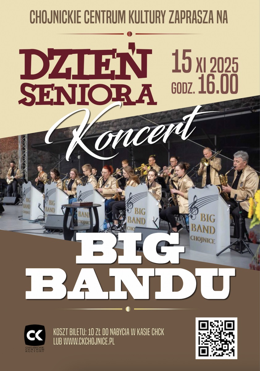 Z okazji Dnia Seniora 15 listopada (sobota) o godz. 16:00 Chojnickie Centrum Kultury zaprasza na koncert muzyki rozrywkowej w wykonaniu chojnickiego Big Bandu.